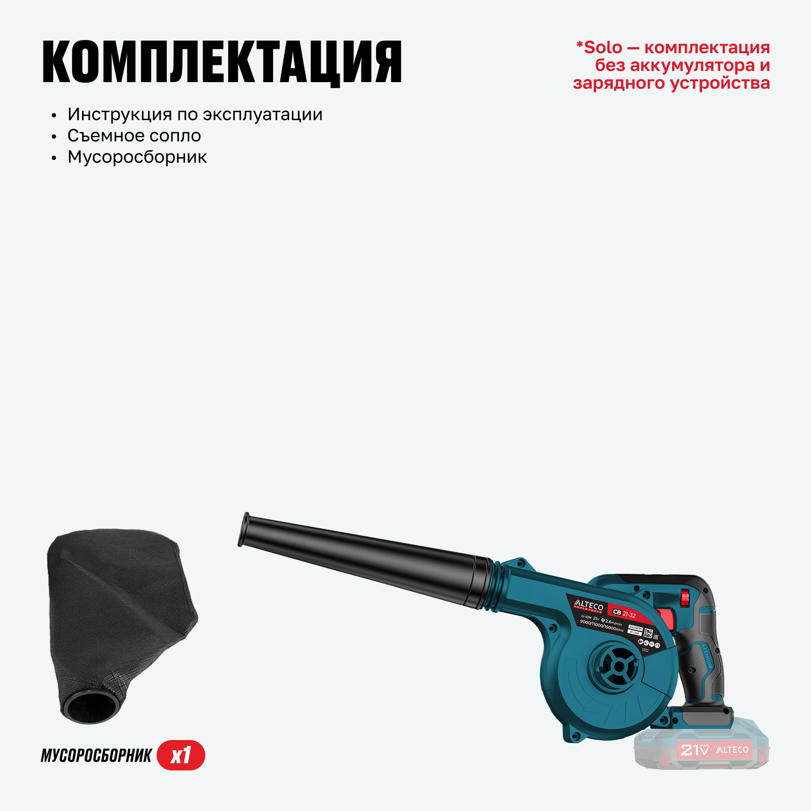 *Solo — комплектация без аккумулятора и зарядного устройства