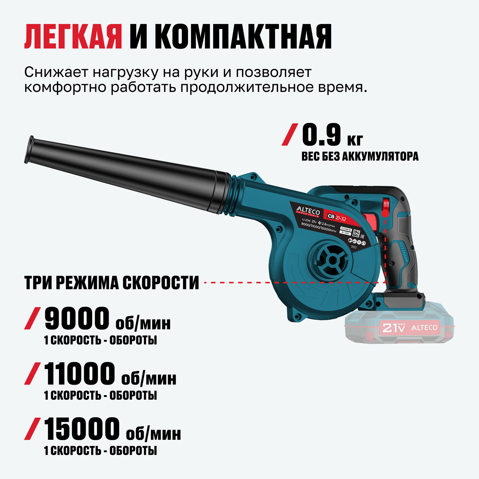 - Часть единой аккумуляторной системы ALTECO 21Vmax — один аккумулятор подходит для всех инструментов этой серии, обеспечивая удобство, экономию и гибкость в работе.
