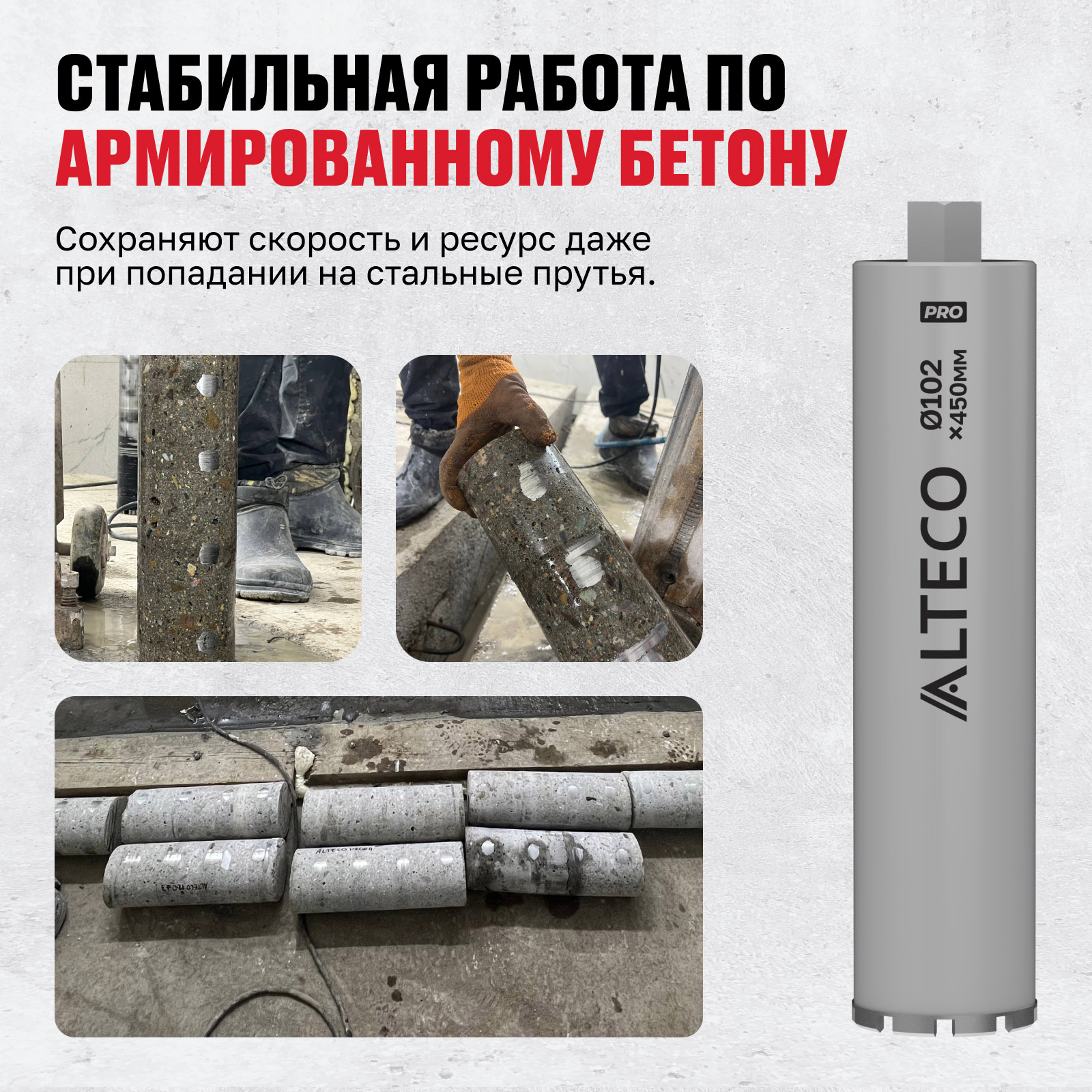 - Стабильная работа по армированному бетону — сохраняют скорость и ресурс даже при попадании на стальные прутья.