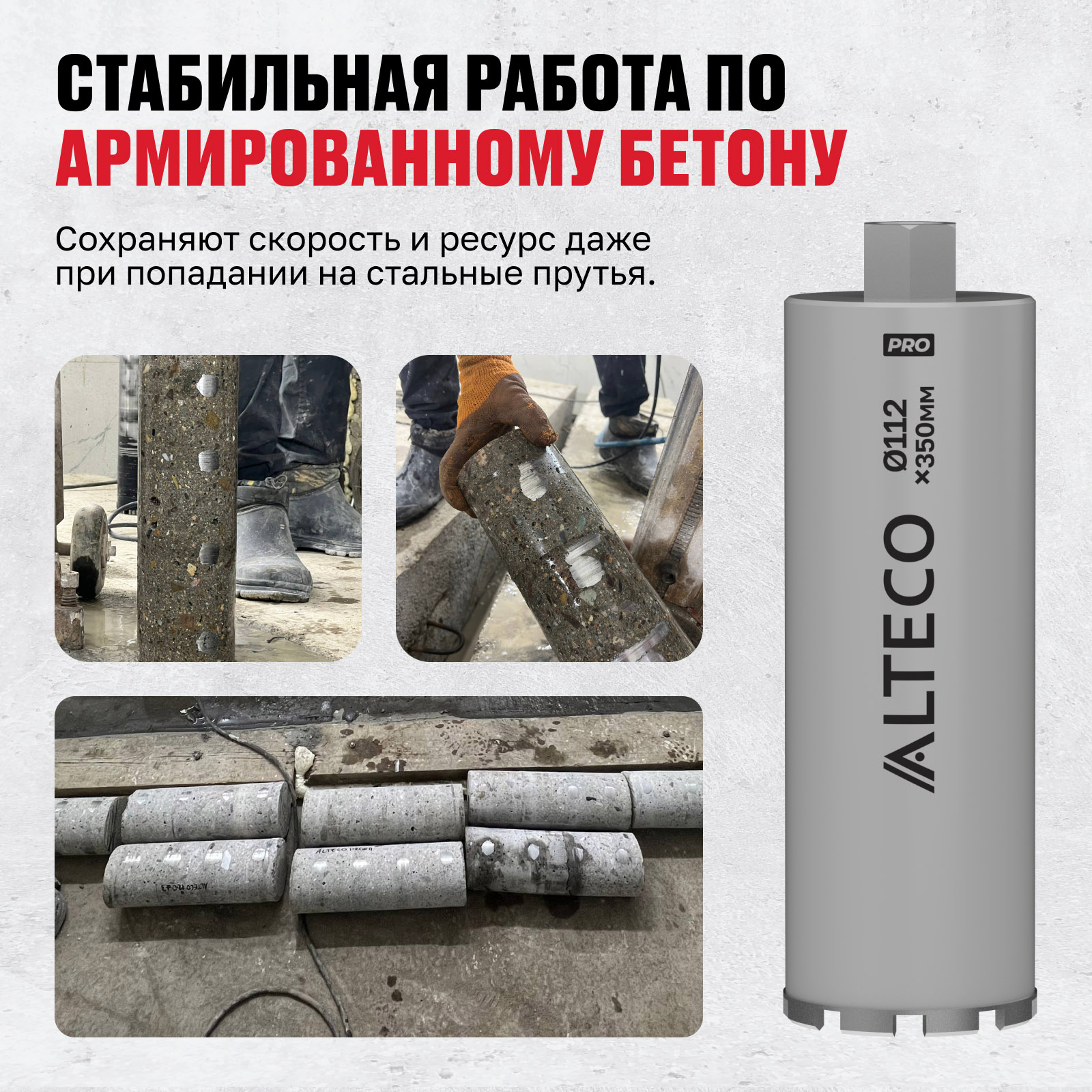 - Стабильная работа по армированному бетону — сохраняют скорость и ресурс даже при попадании на стальные прутья.