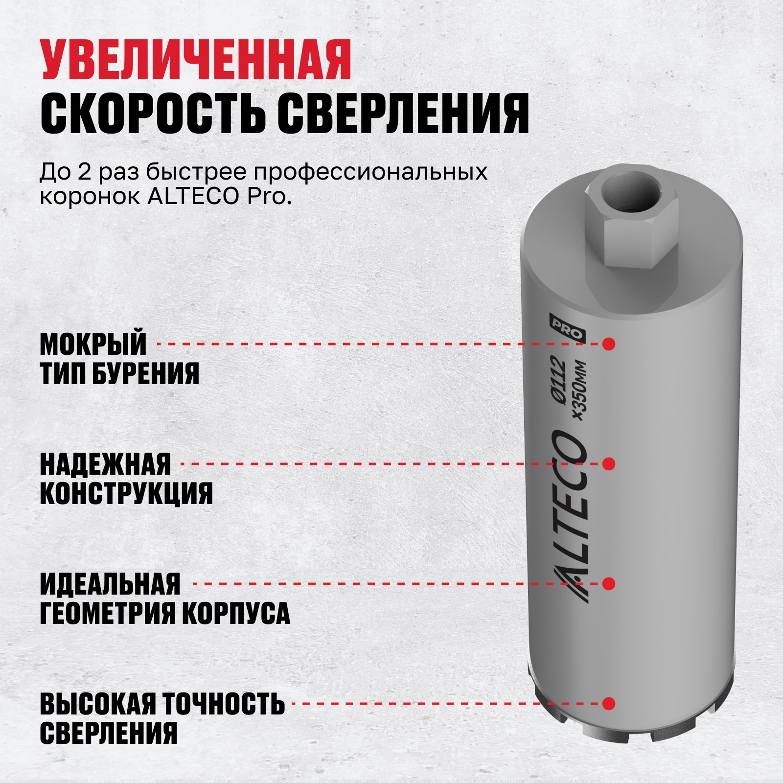 - Мокрый тип бурения — предотвращает перегрев и продлевает срок службы коронки.