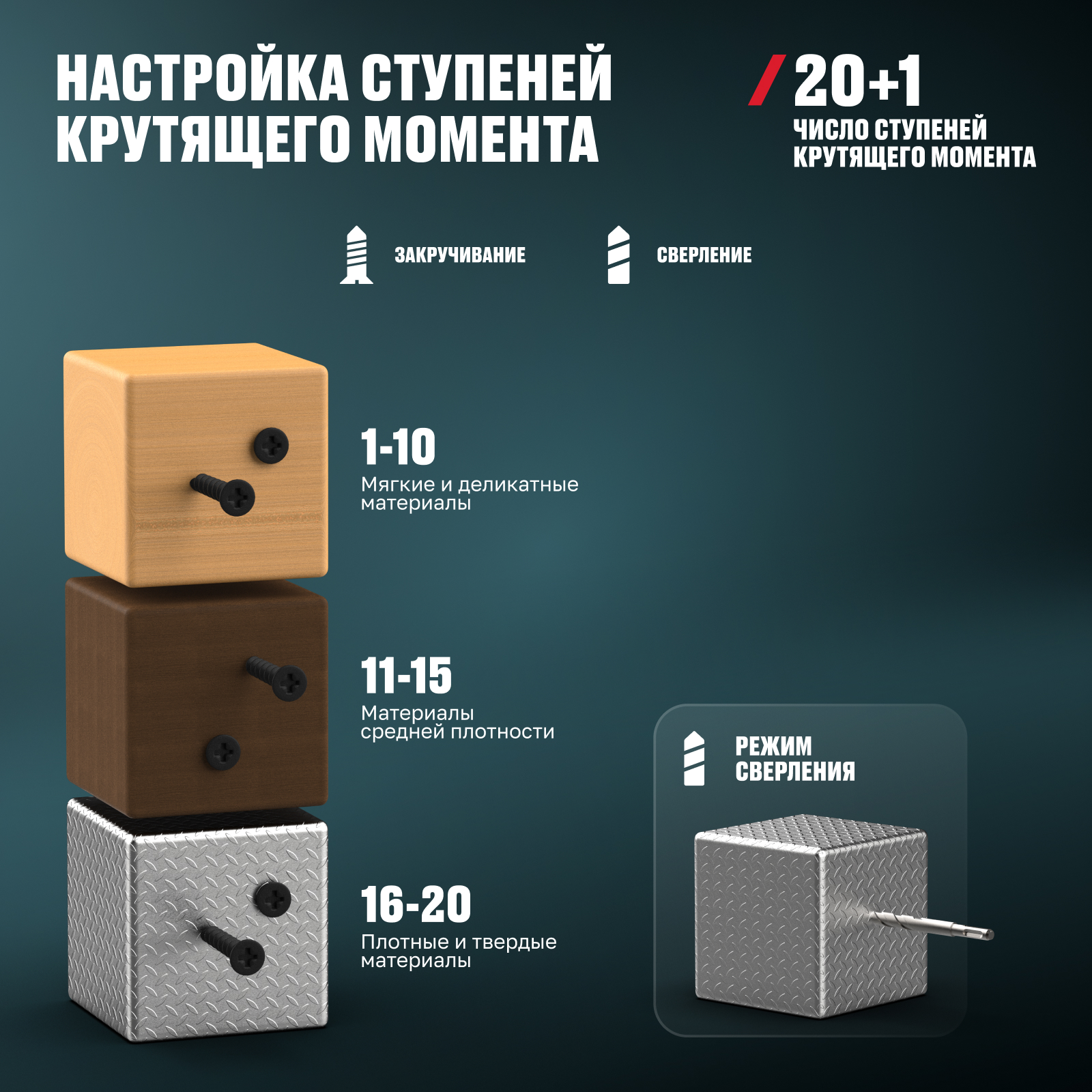 | Число ступеней крутящего момента | 20+1 |