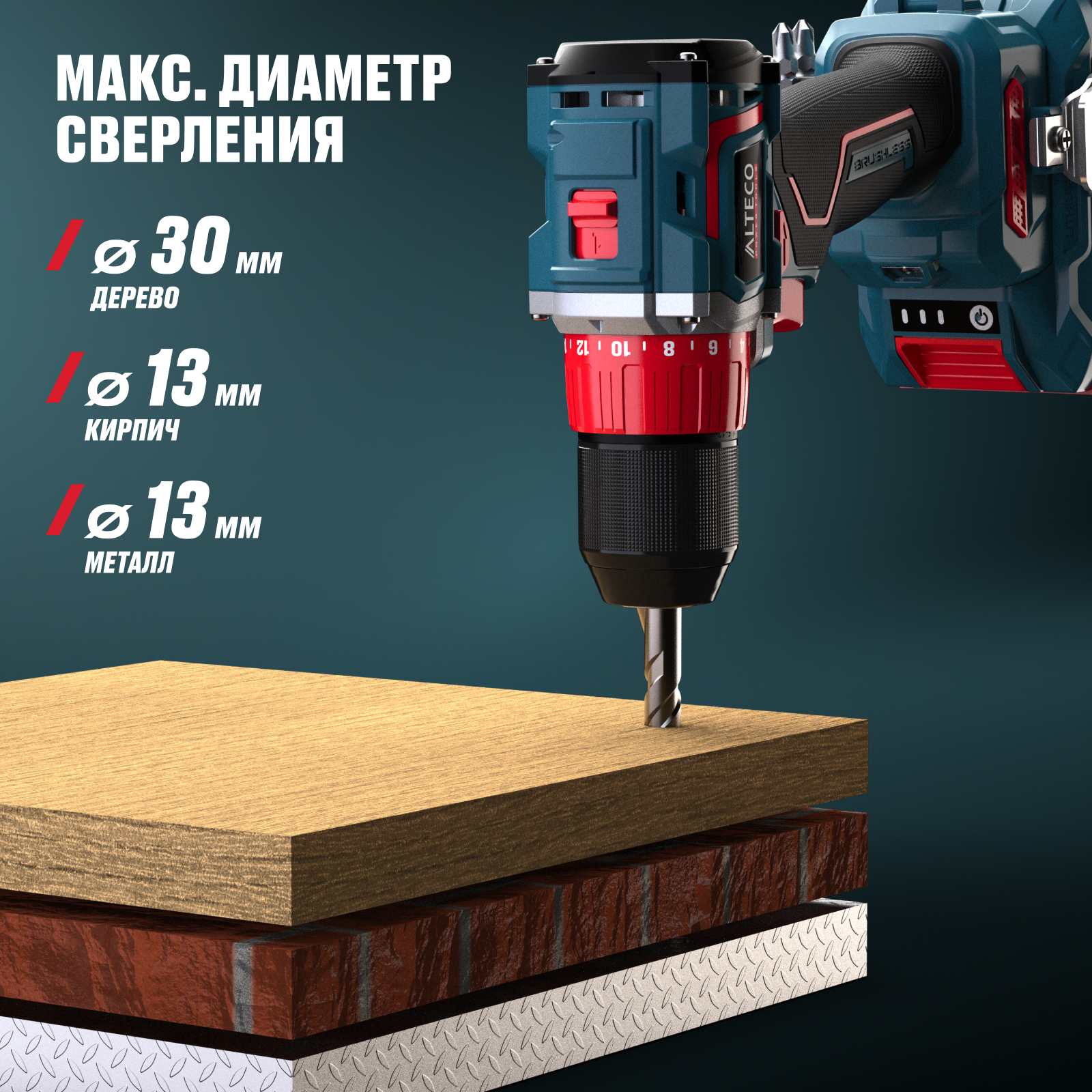 | Макс. диаметр сверления (металл), мм | 13 |