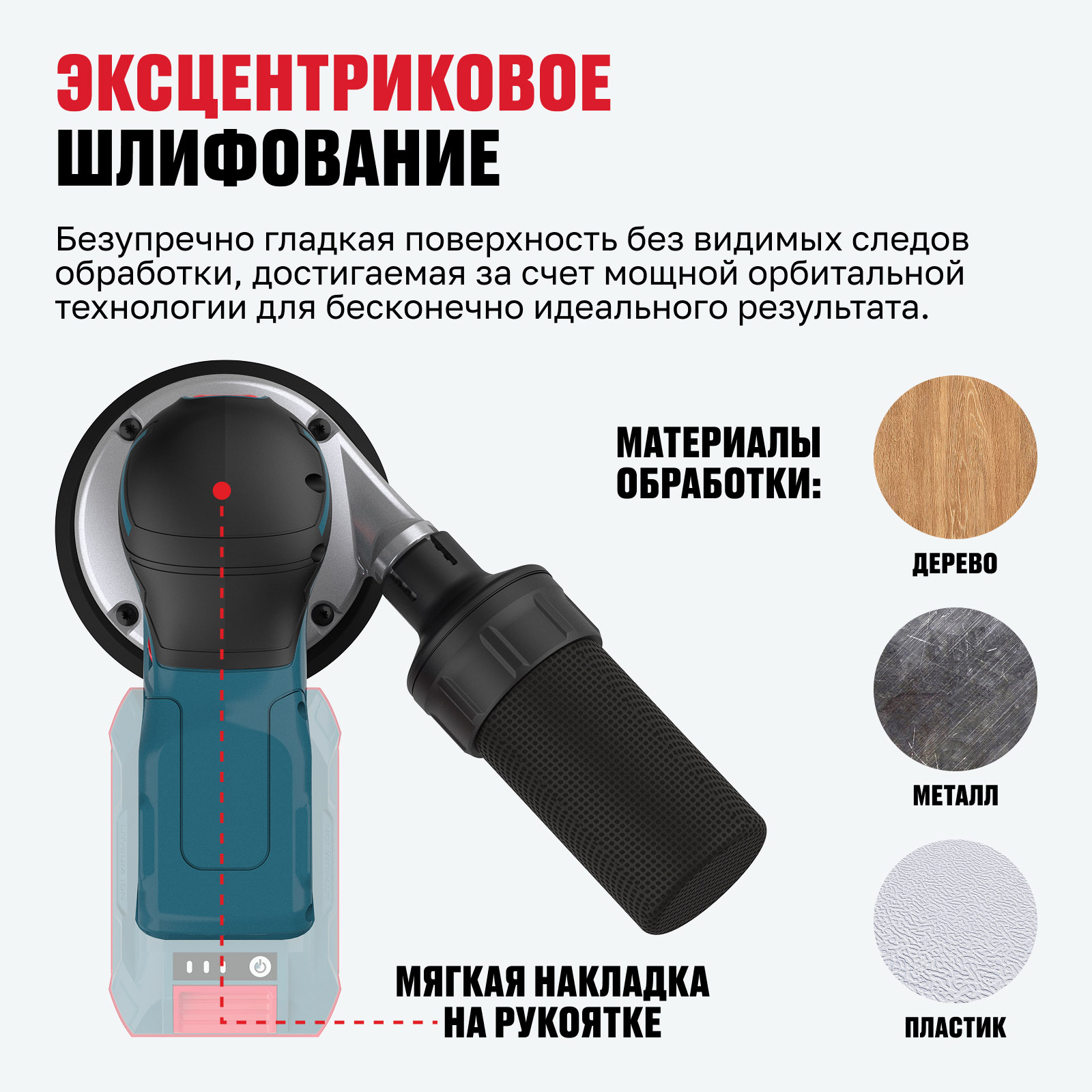 - Эксцентриковое шлифование — безупречно гладкая поверхность без видимых следов обработки, достигаемая за счет мощной орбитальной технологии для бесконечно идеального результата.