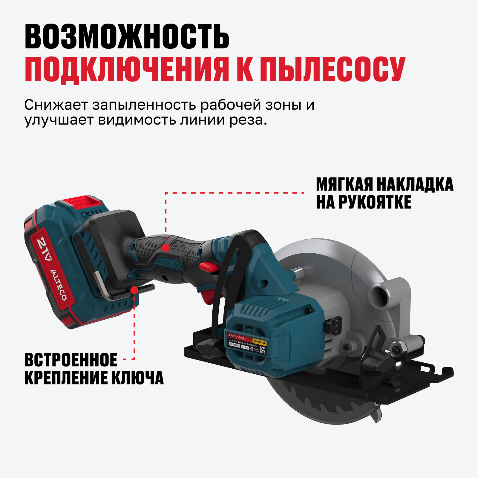 - Часть единой аккумуляторной системы ALTECO 21Vmax — один аккумулятор подходит для всех инструментов этой серии, обеспечивая удобство, экономию и гибкость в работе.