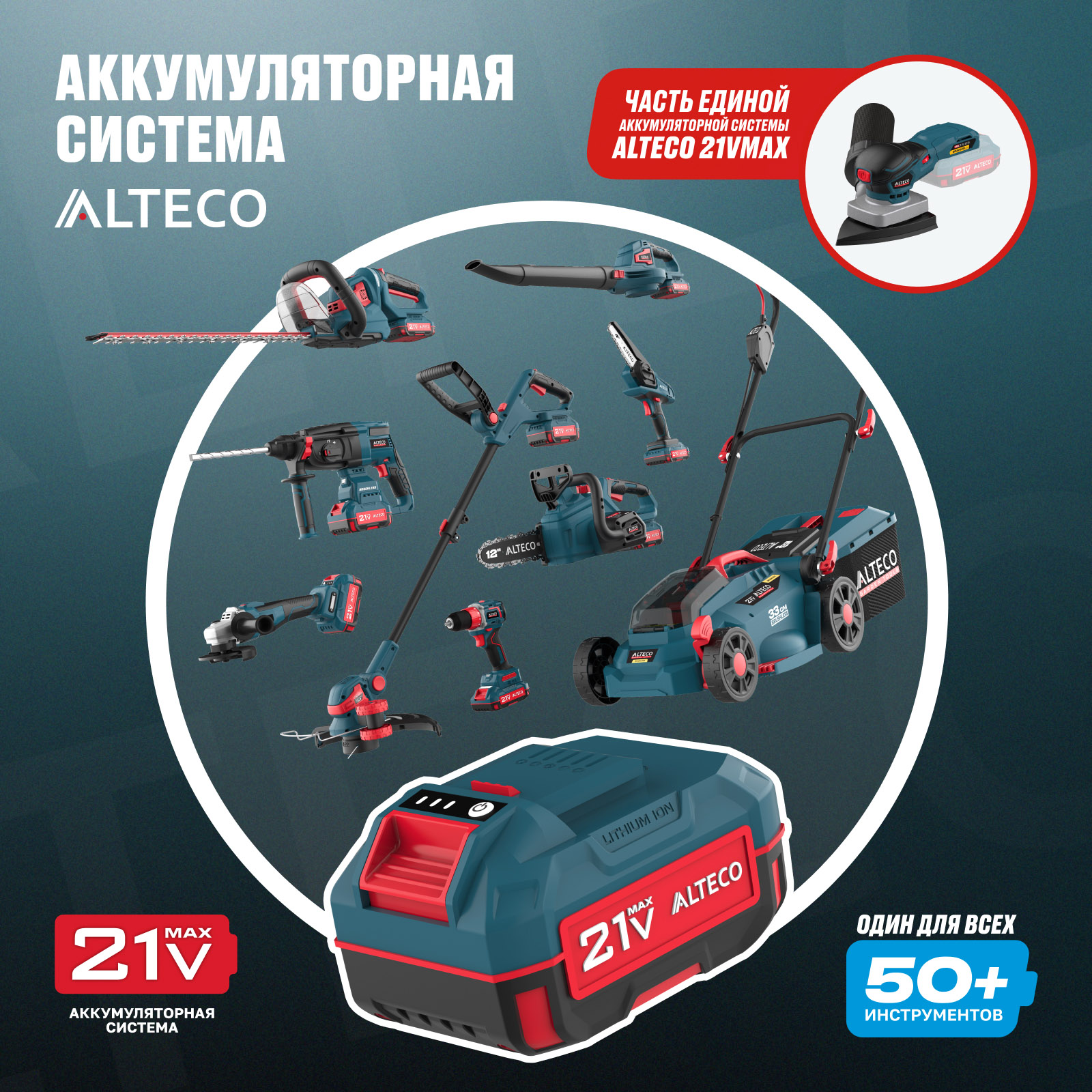 - Часть единой аккумуляторной системы ALTECO 21Vmax — один аккумулятор подходит для всех инструментов этой серии, обеспечивая удобство, экономию и гибкость в работе.