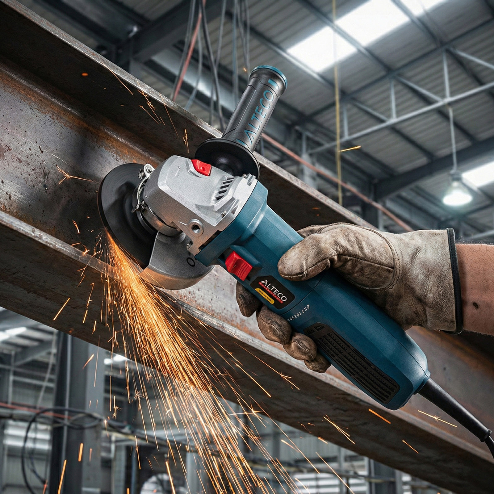 - Быстросъемный защитный кожух — надёжно защищает от искр и абразивных частиц, легко регулируется без инструмента.