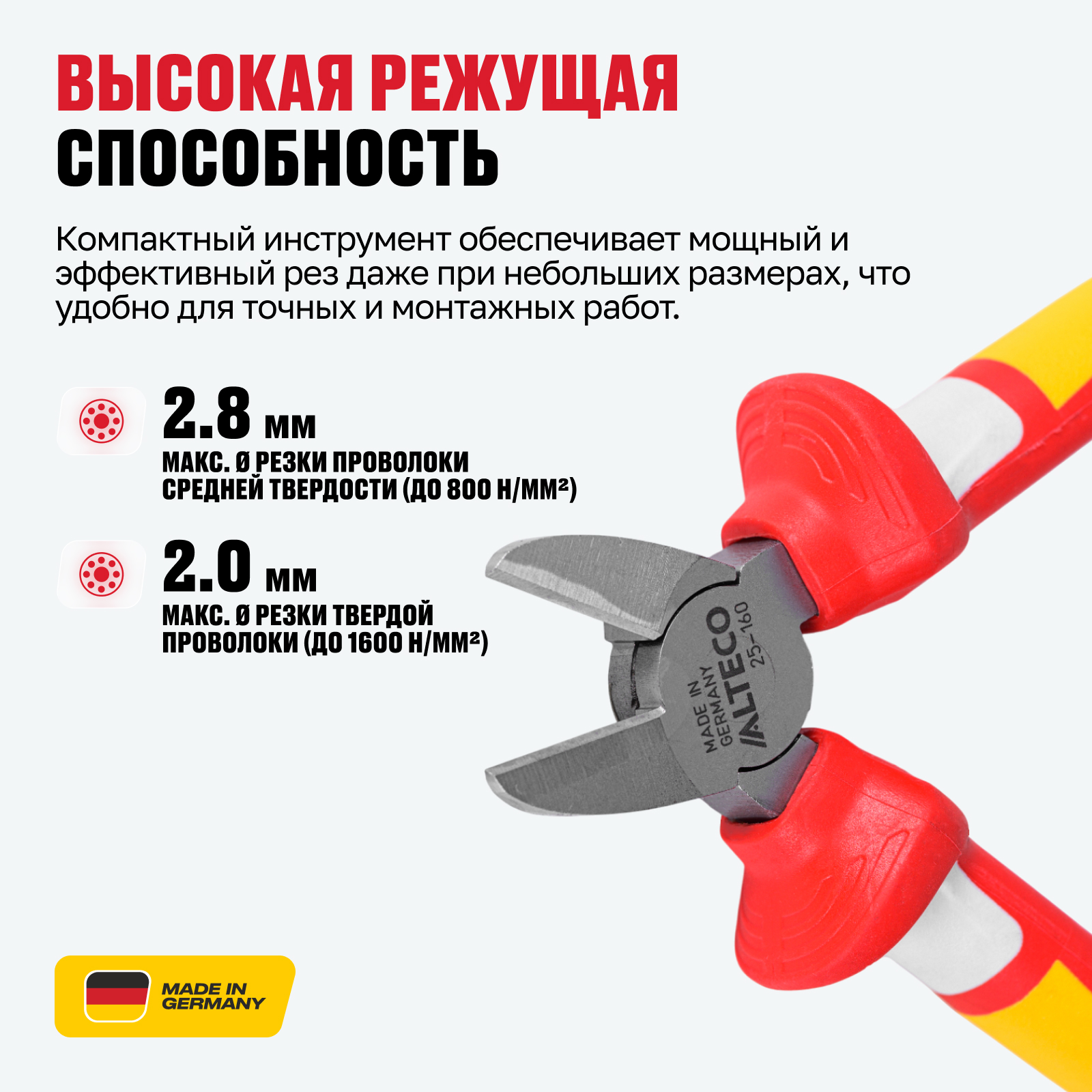 - Прецизионные режущие кромки — долговечные и точно обработанные кромки обеспечивают чистый рез без заусенцев, включая аккуратную резку тонкой медной проволоки даже кончиками инструмента.