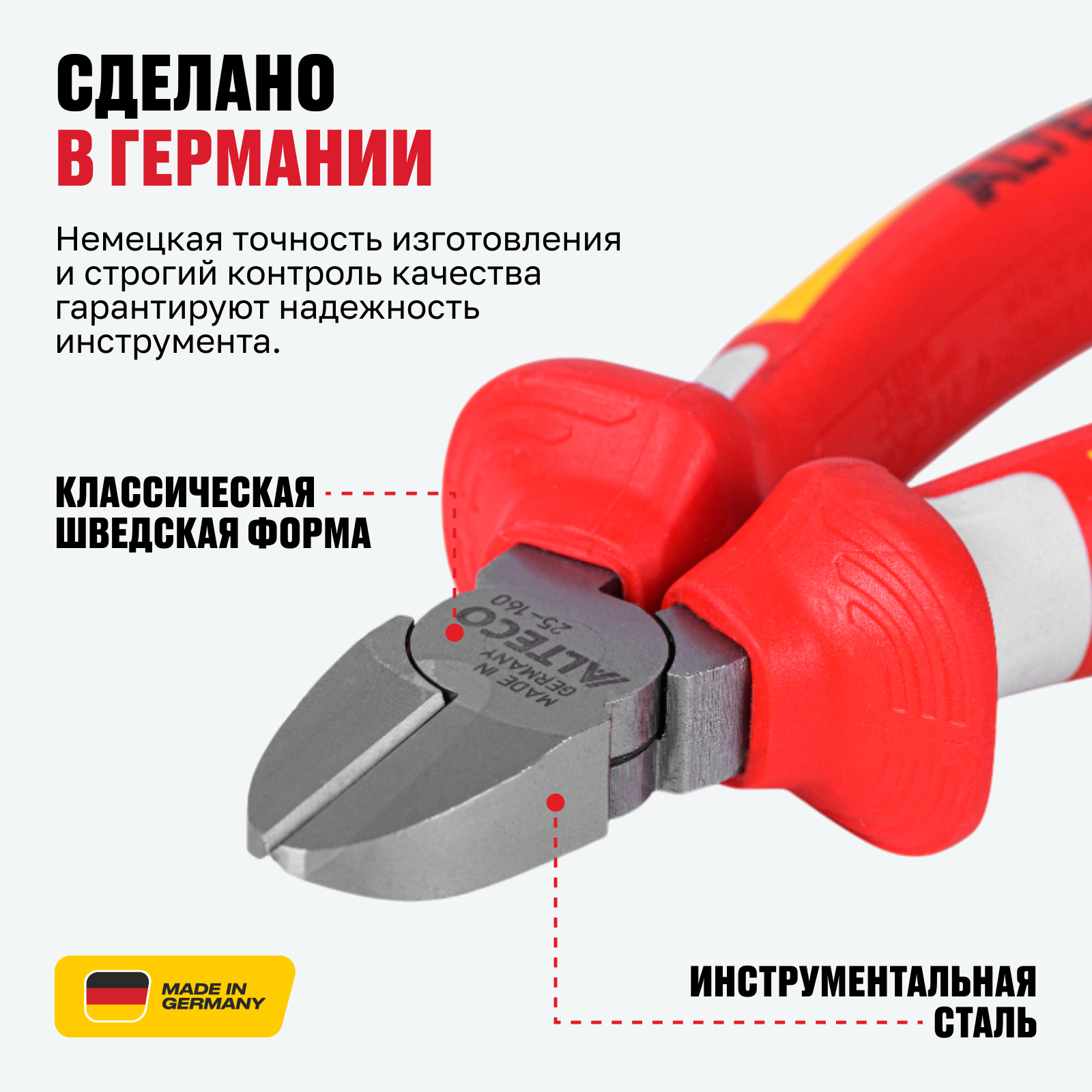 - Сделано в Германии — немецкая точность изготовления и строгий контроль качества гарантируют надежность инструмента.