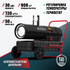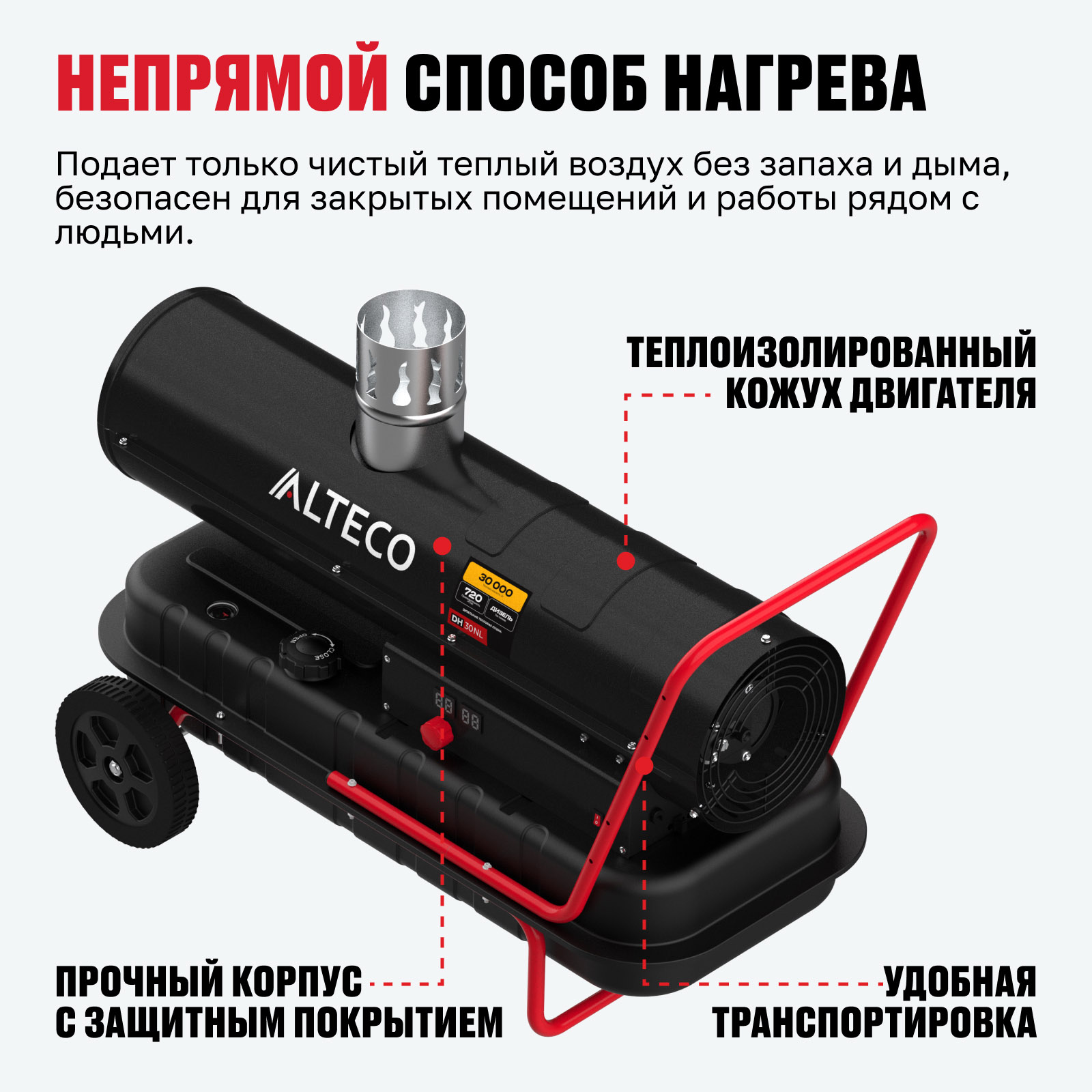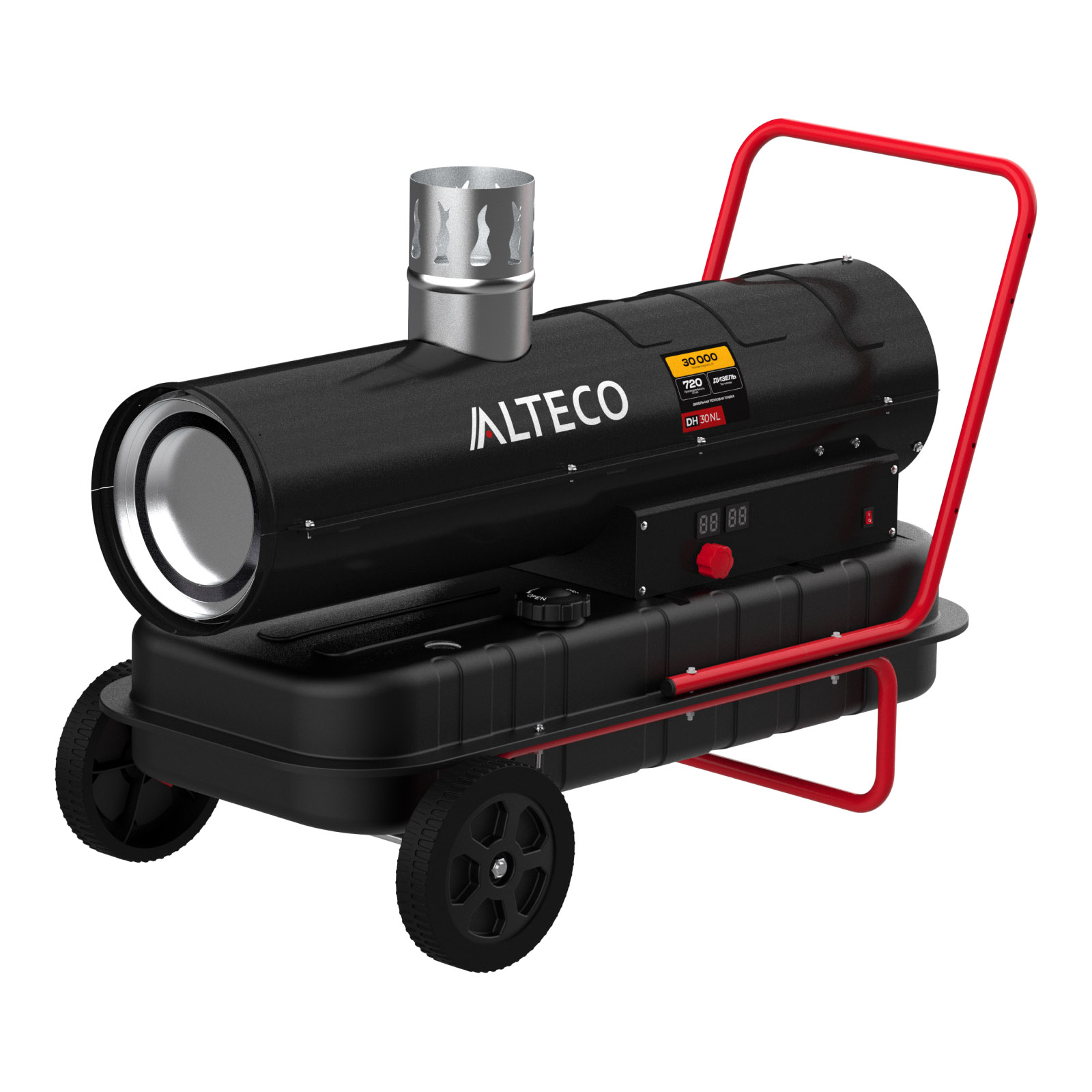 - Высокая мощность обогрева 30 кВт — обеспечивает быстрый прогрев воздуха и стабильную температуру на площади до 900 м³ при производительности 720 м³/ч.