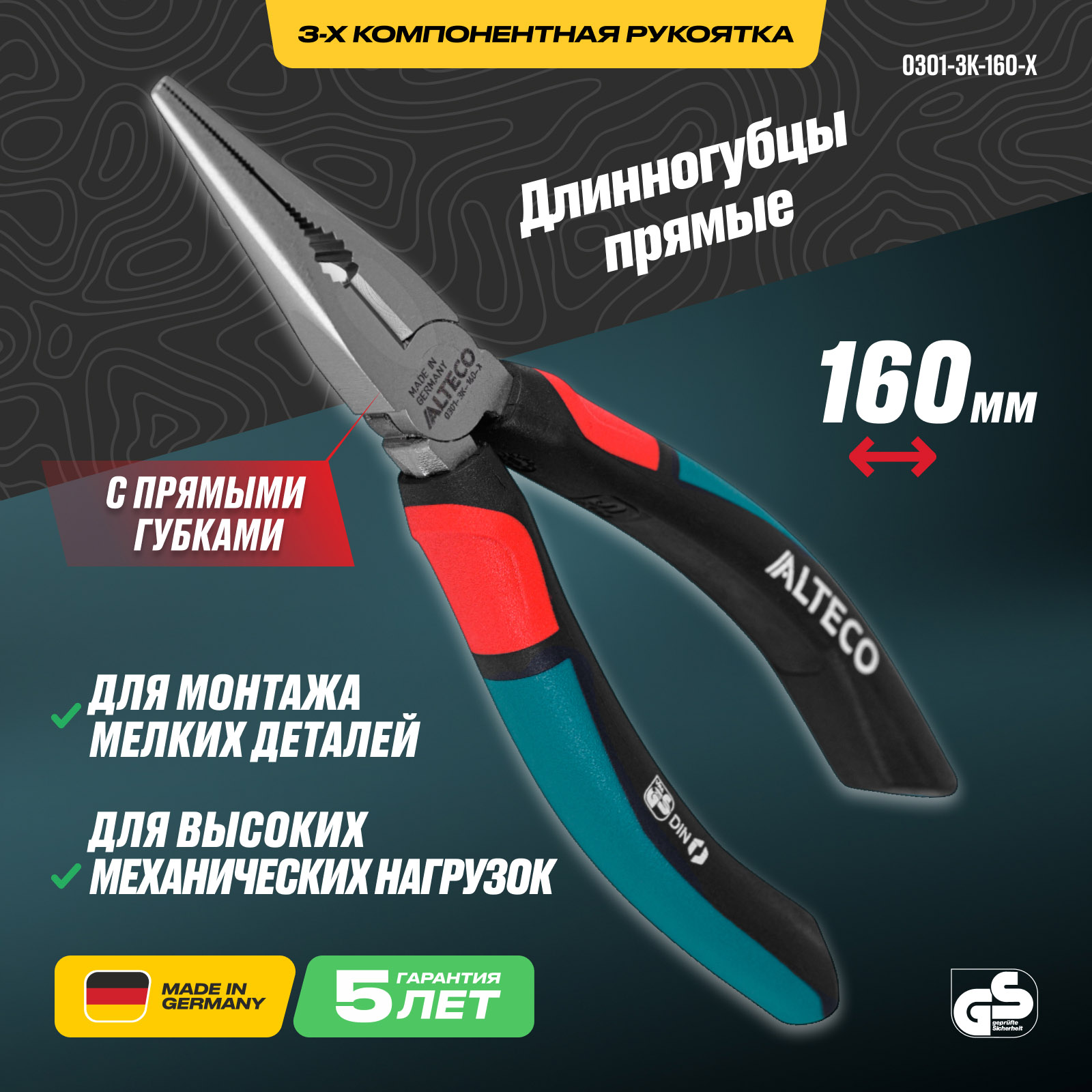 - Прямые длинные губки с тонким профилем — полукруглое сечение обеспечивает высокую точность работы и удобный доступ к деталям в труднодоступных местах.