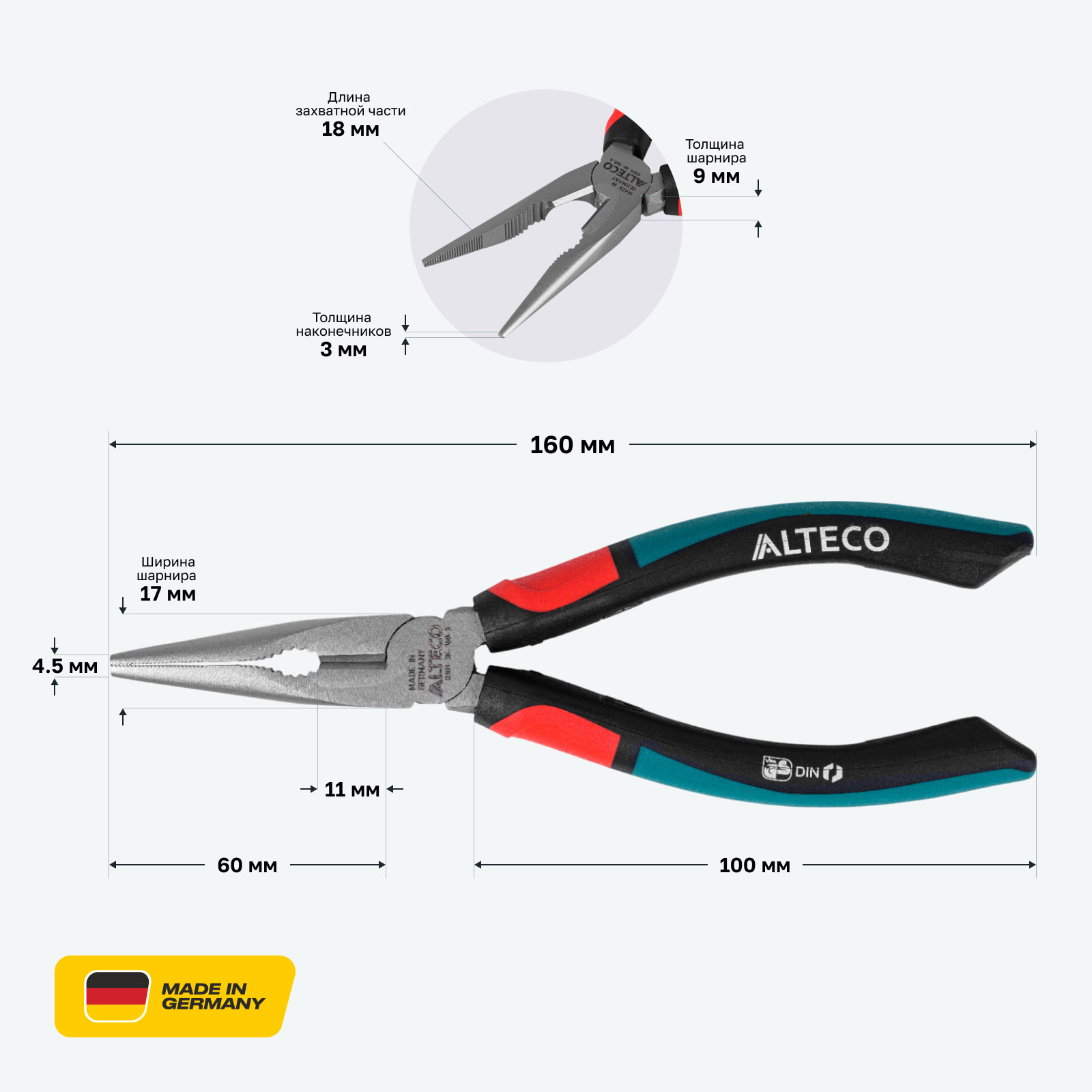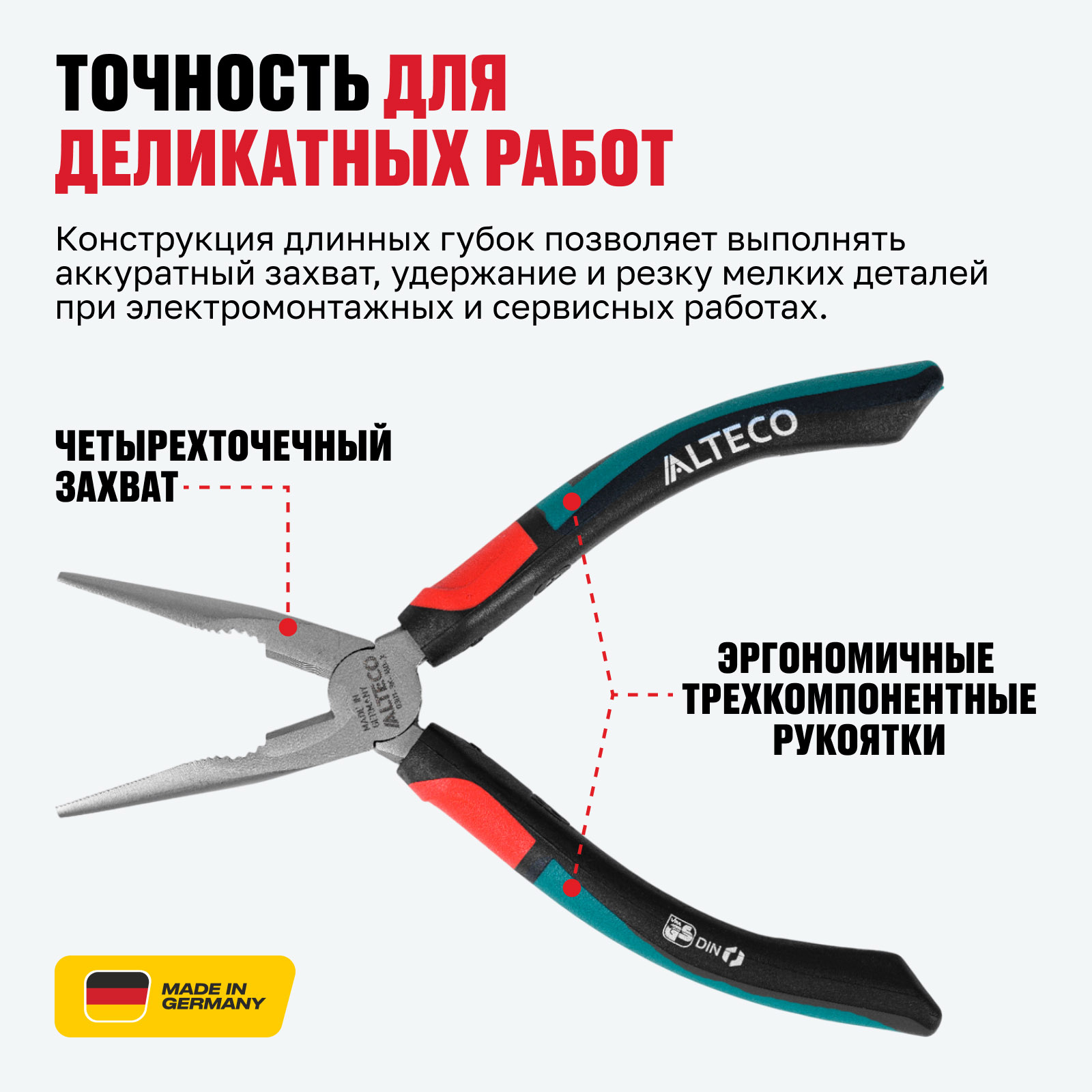 - Точность для деликатных работ — конструкция длинных губок позволяет выполнять аккуратный захват, удержание и резку мелких деталей при электромонтажных и сервисных работах.
