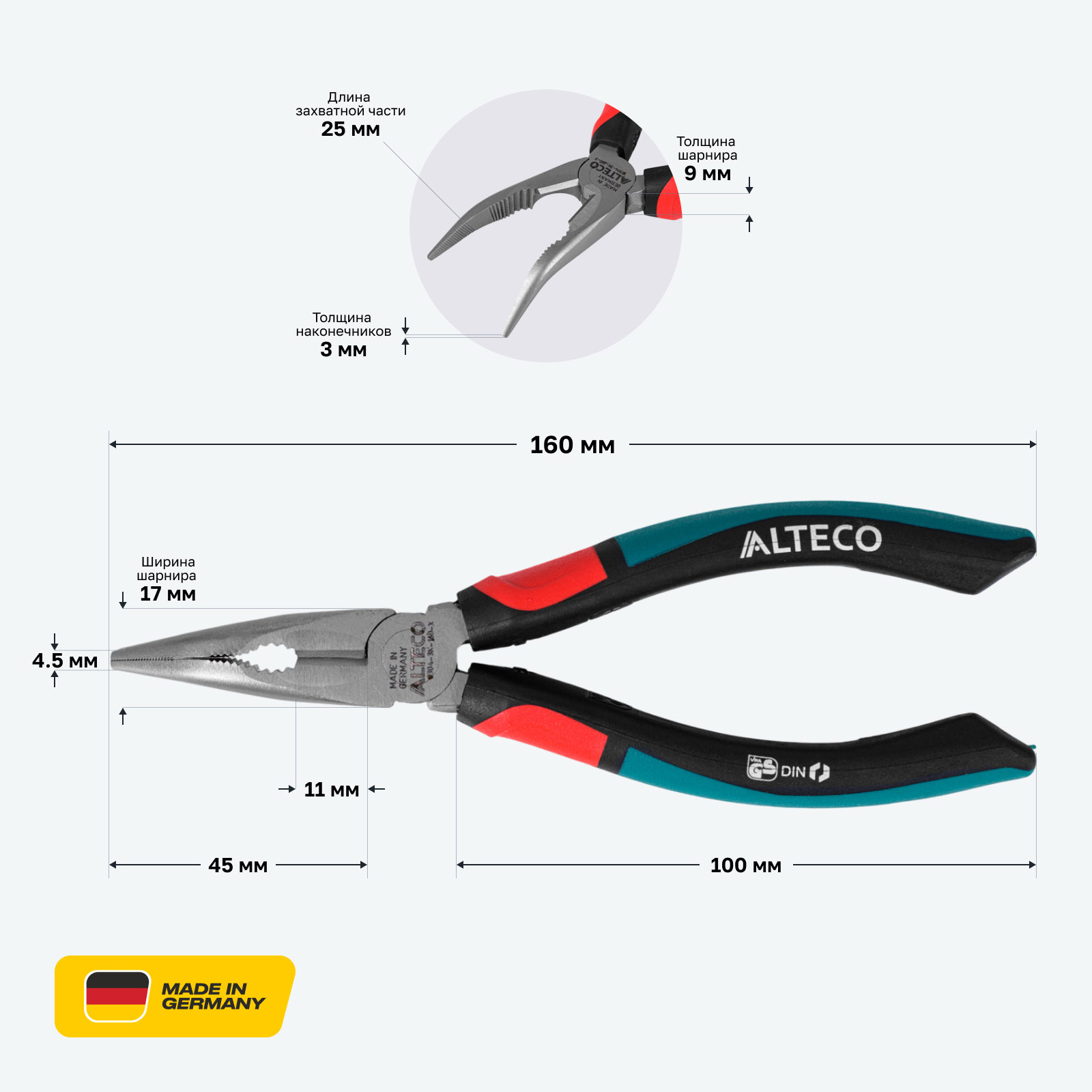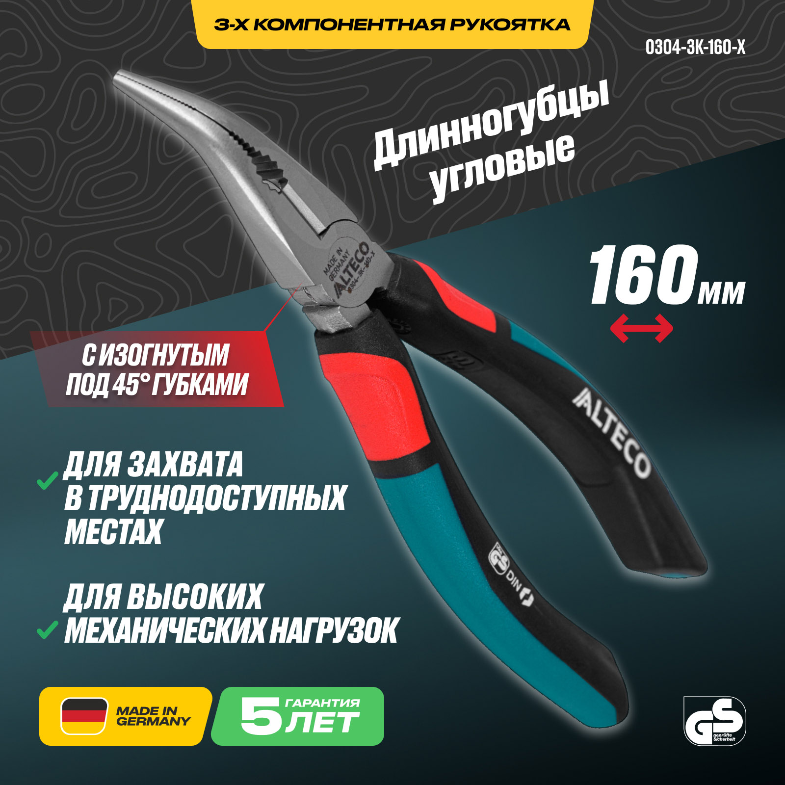 - Изогнутые на 45° длинные губки — полукруглый профиль обеспечивает удобный доступ к деталям и точный контроль при работе с мелкими элементами, особенно в труднодоступных местах.