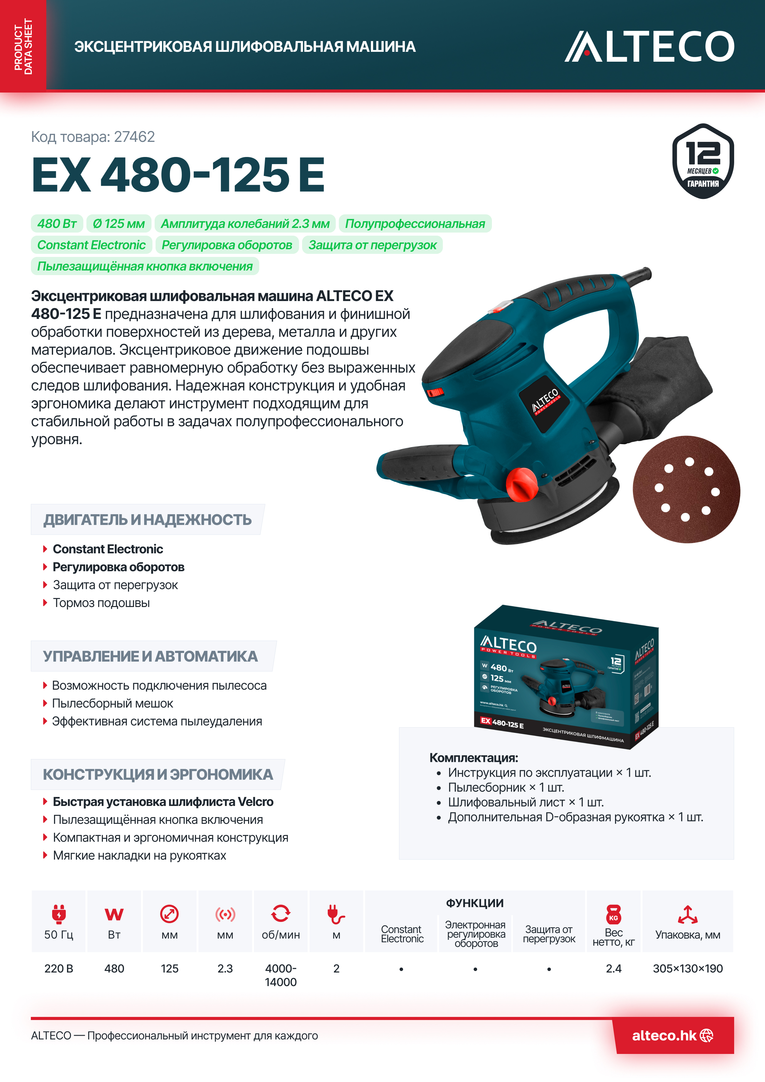 Преимущества ALTECO EX 480-125 E
