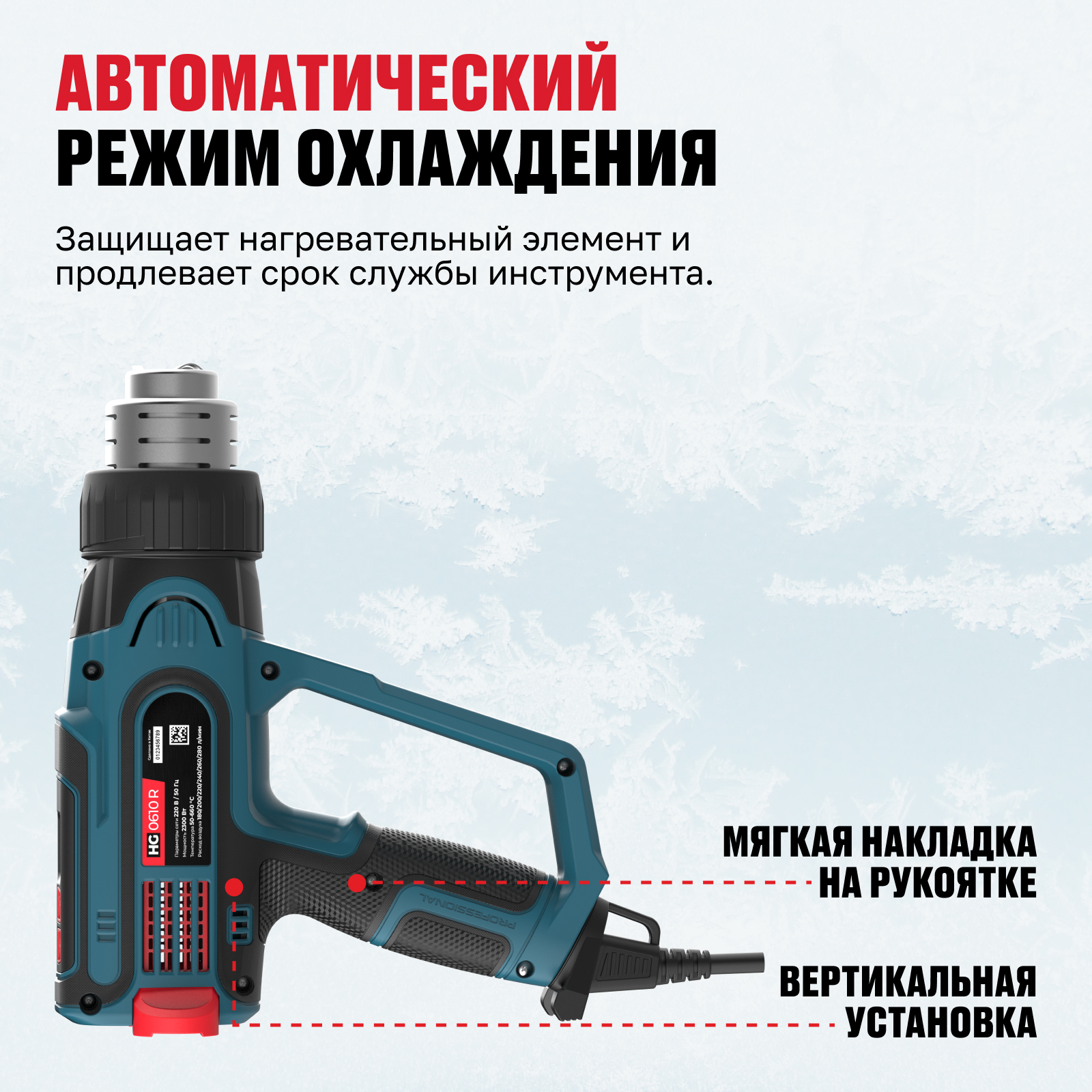 - Автоматический режим охлаждения — защищает нагревательный элемент и продлевает срок службы инструмента.