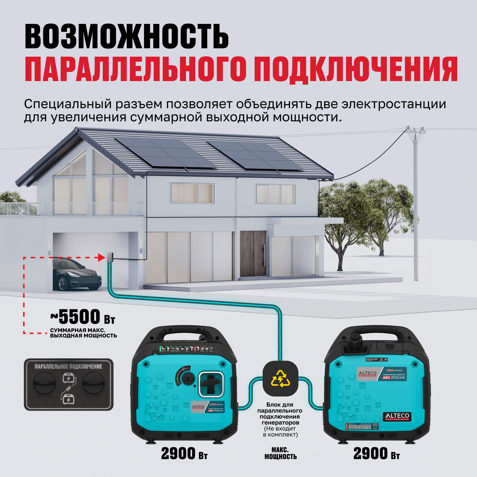 Возможность параллельного подключения — специальный разъем позволяет объединять две электростанции для увеличения суммарной выходной мощности.