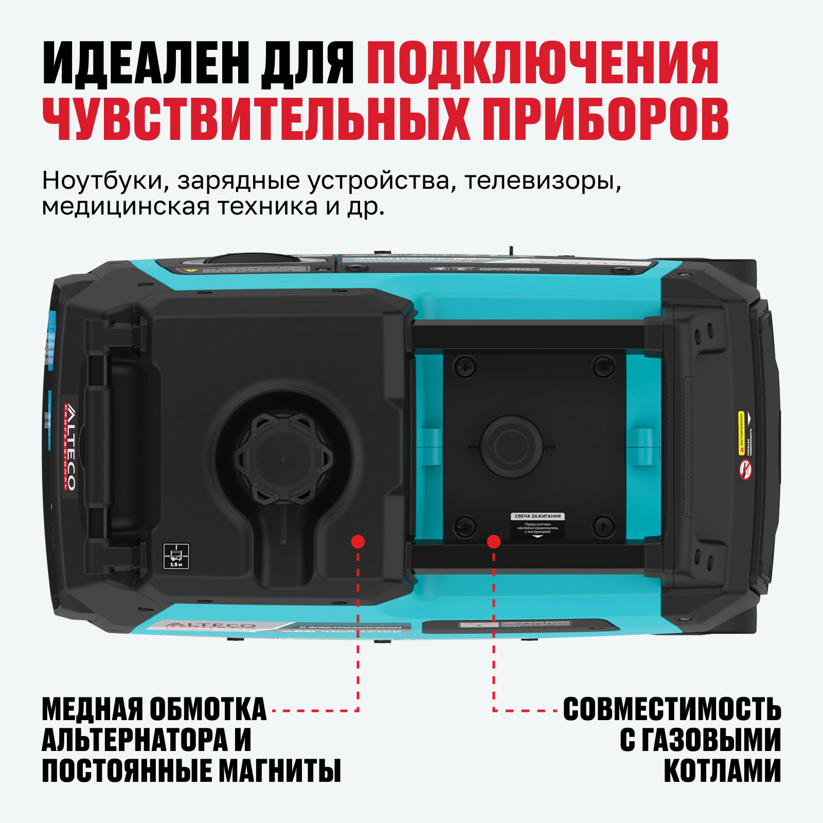 - Инверторная технология — обеспечивает стабильное напряжение и чистый ток, безопасный для чувствительной электроники (THD < 3%).