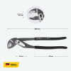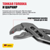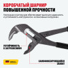 - Самофиксирующийся захват — надежно удерживает трубы и гайки, позволяя работать быстрее и безопаснее без проскальзывания.