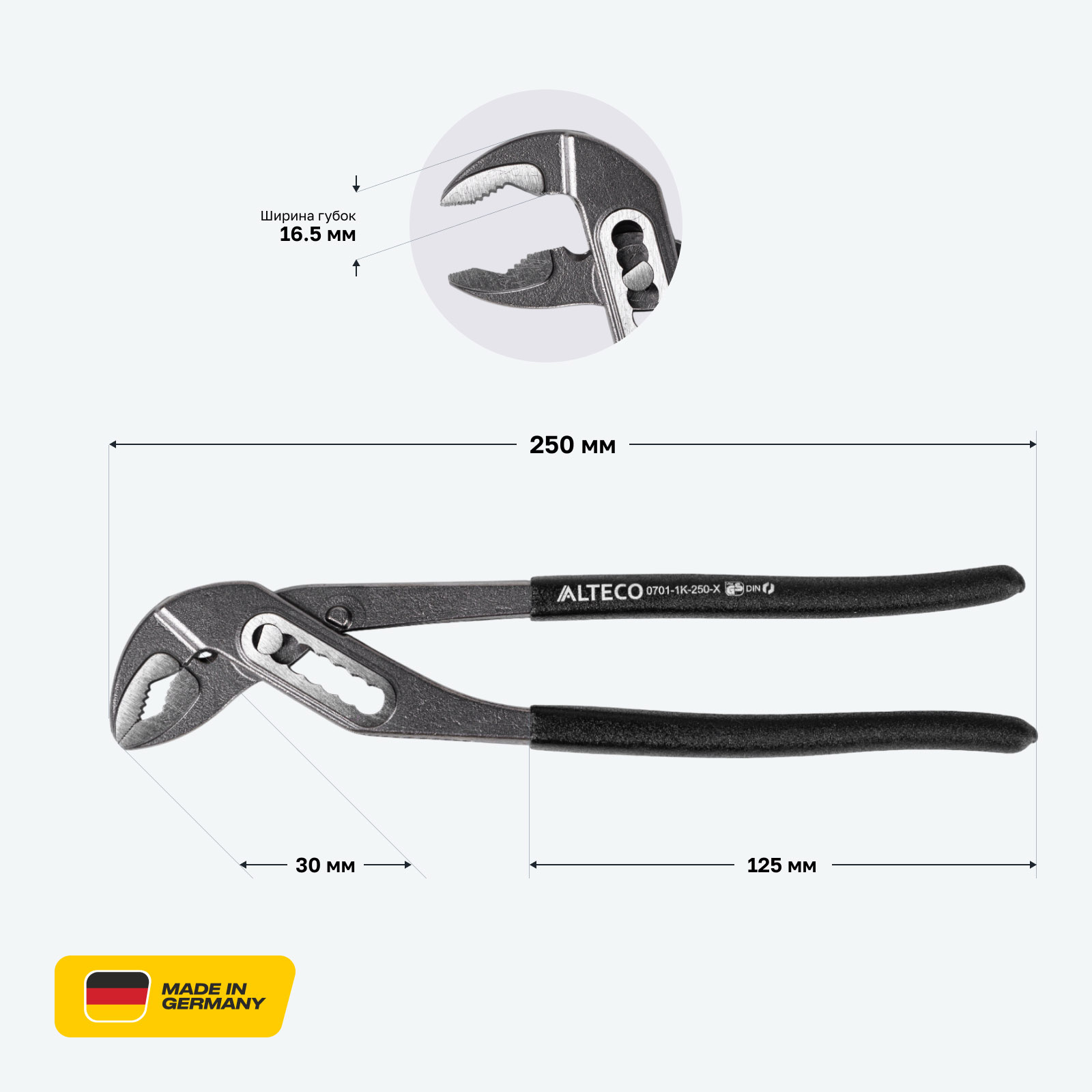 - Сделано в Германии — немецкая точность изготовления и строгий контроль качества гарантируют надежность инструмента.