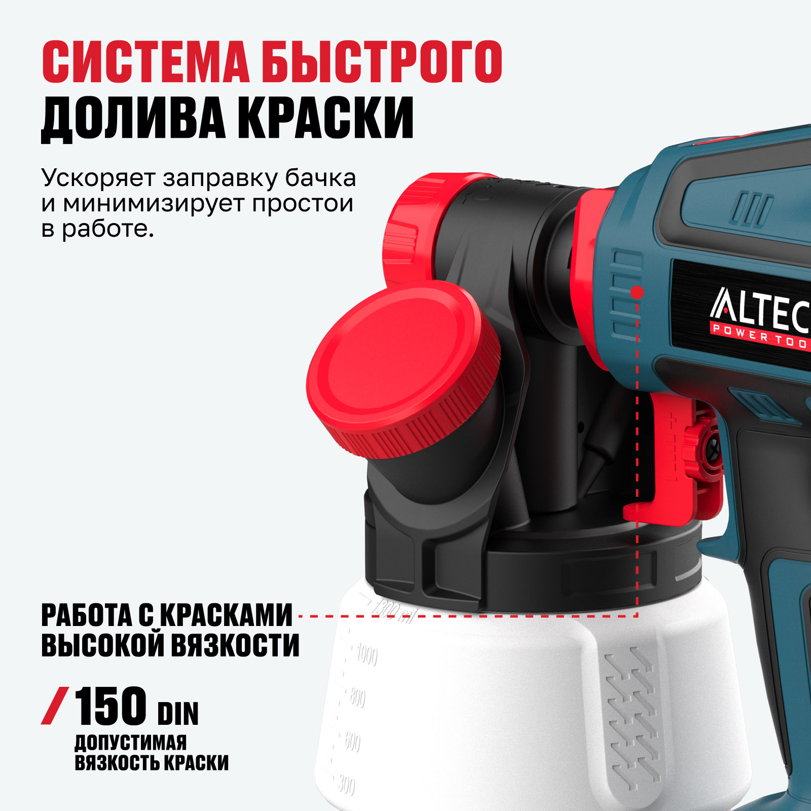 - Высокая производительность 1200 мл/мин — обеспечивает быстрый и равномерный перенос краски, сокращая время выполнения работ.