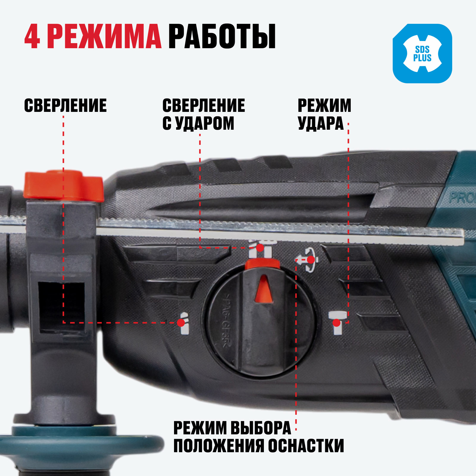 - Патрон SDS-Plus — быстрая и удобная замена оснастки без инструментов.