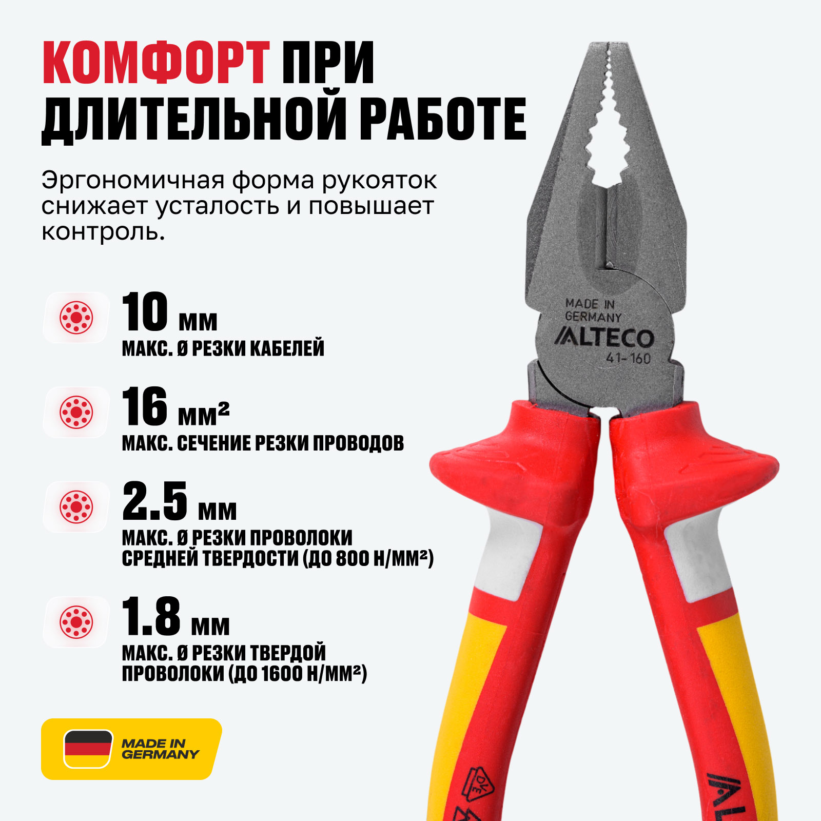 - Диэлектрическая защита до 1000 В (VDE) — рукоятки протестированы по стандарту VDE и обеспечивают безопасную работу под напряжением до 1000 В.