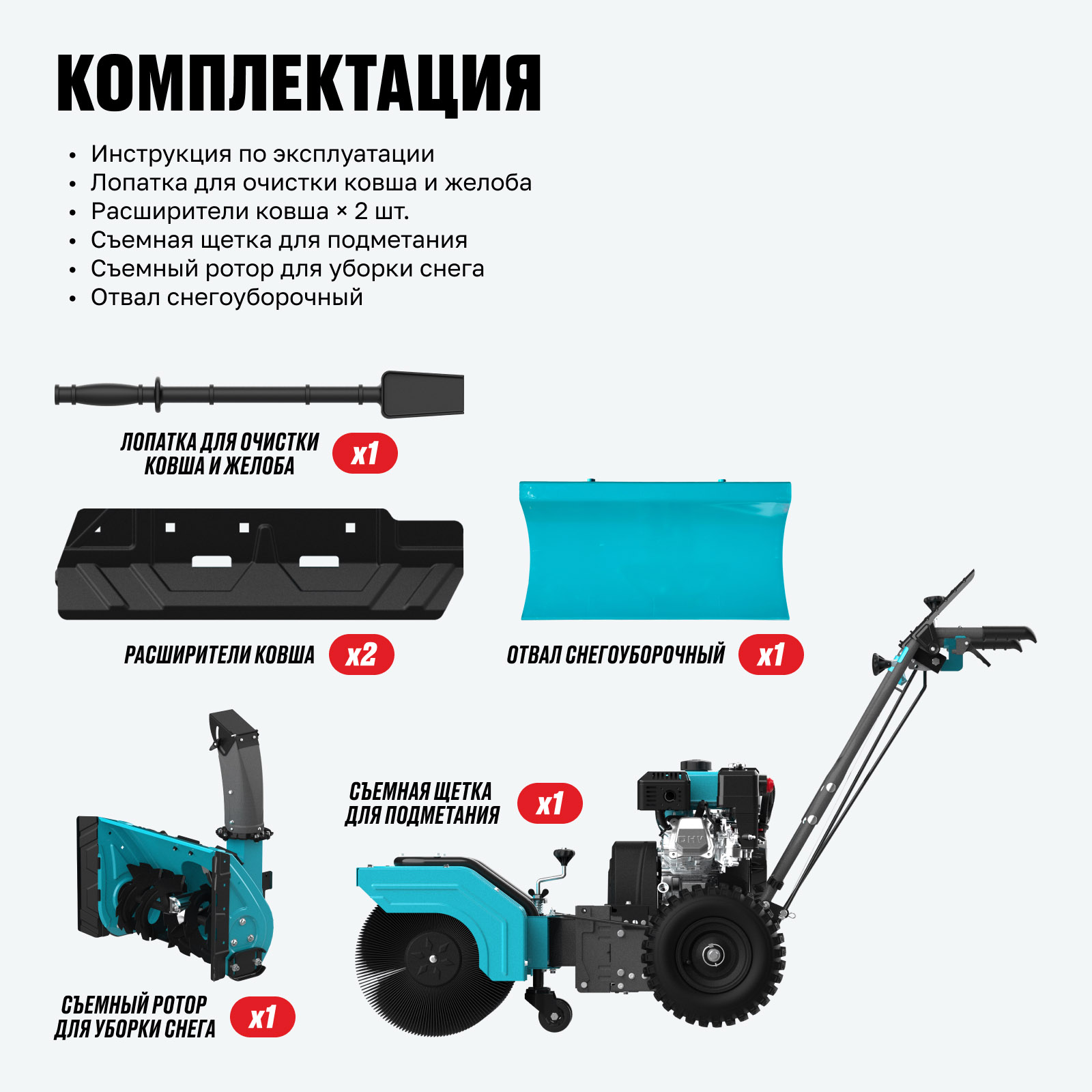 - Универсальная машина 2в1: уборка снега и подметание — сочетает функции снегоуборщика и подметальной техники, обеспечивая удобство и эффективность круглогодичной эксплуатации.