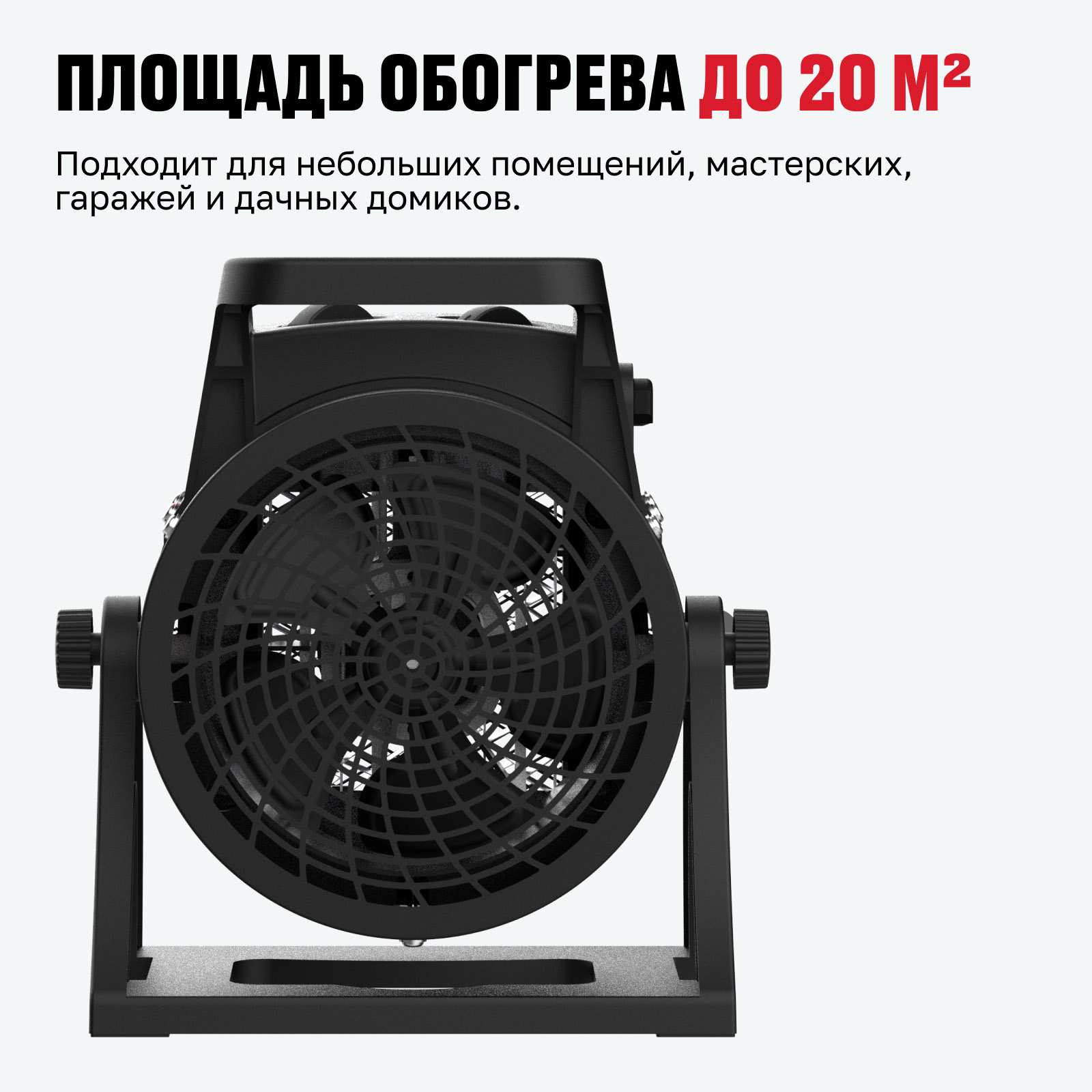 - Площадь обогрева до 20 м² — подходит для небольших помещений, мастерских, гаражей и дачных домиков.