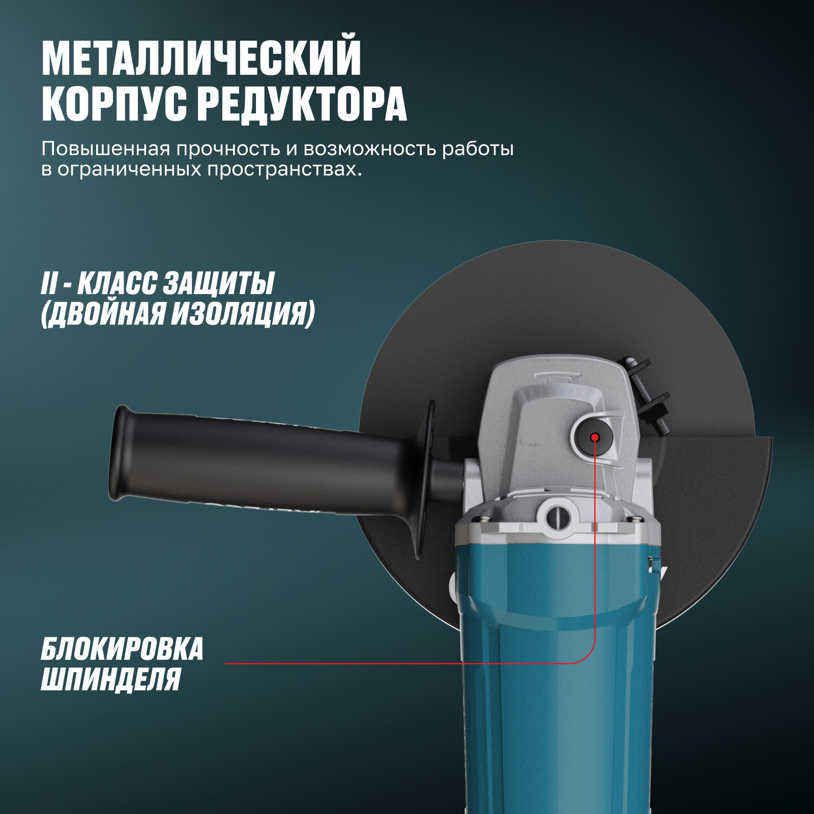 - Металлический корпус редуктора — повышенная прочность и возможность работы в ограниченных пространствах.