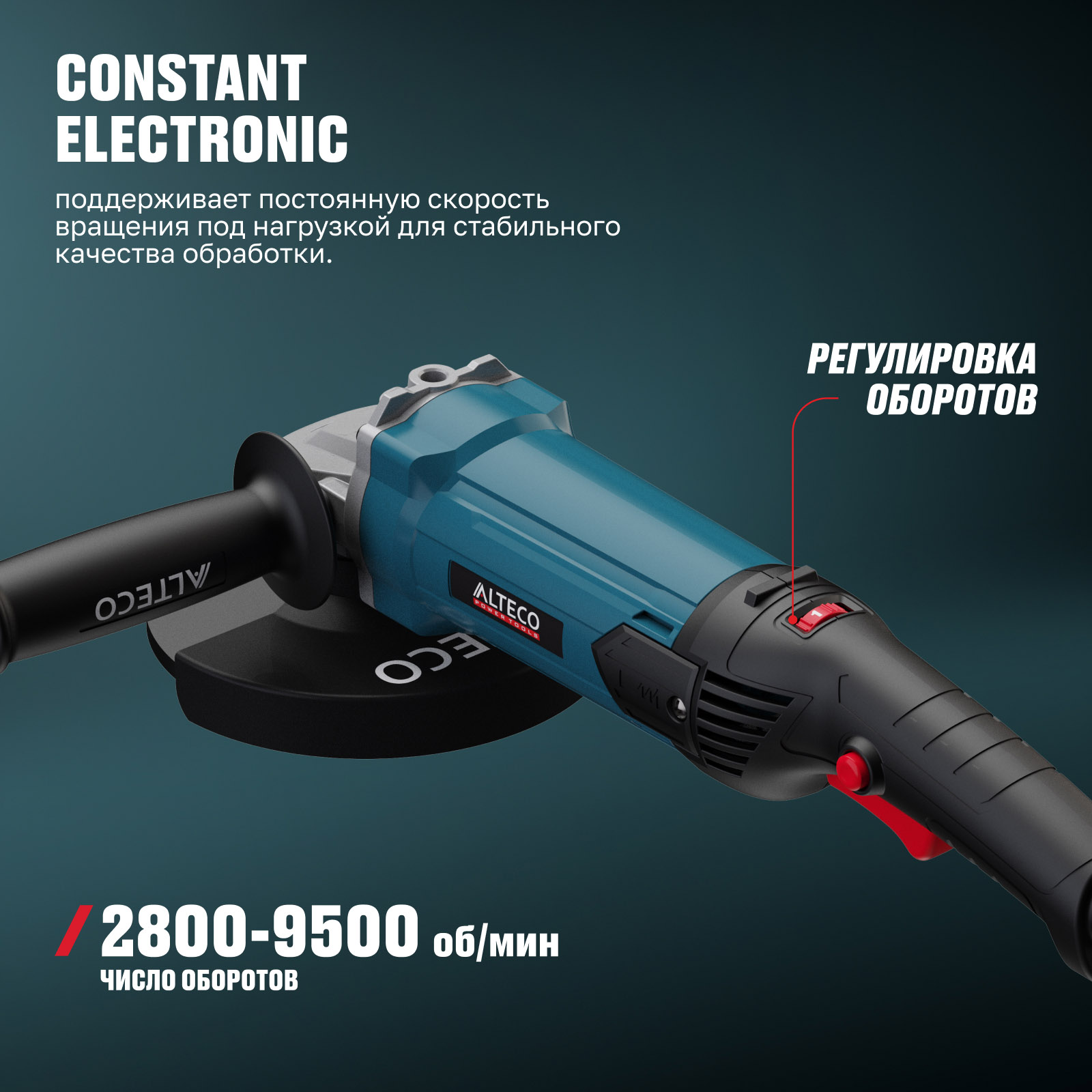 - Constant Electronic — поддерживает постоянную скорость вращения под нагрузкой для стабильного качества обработки.