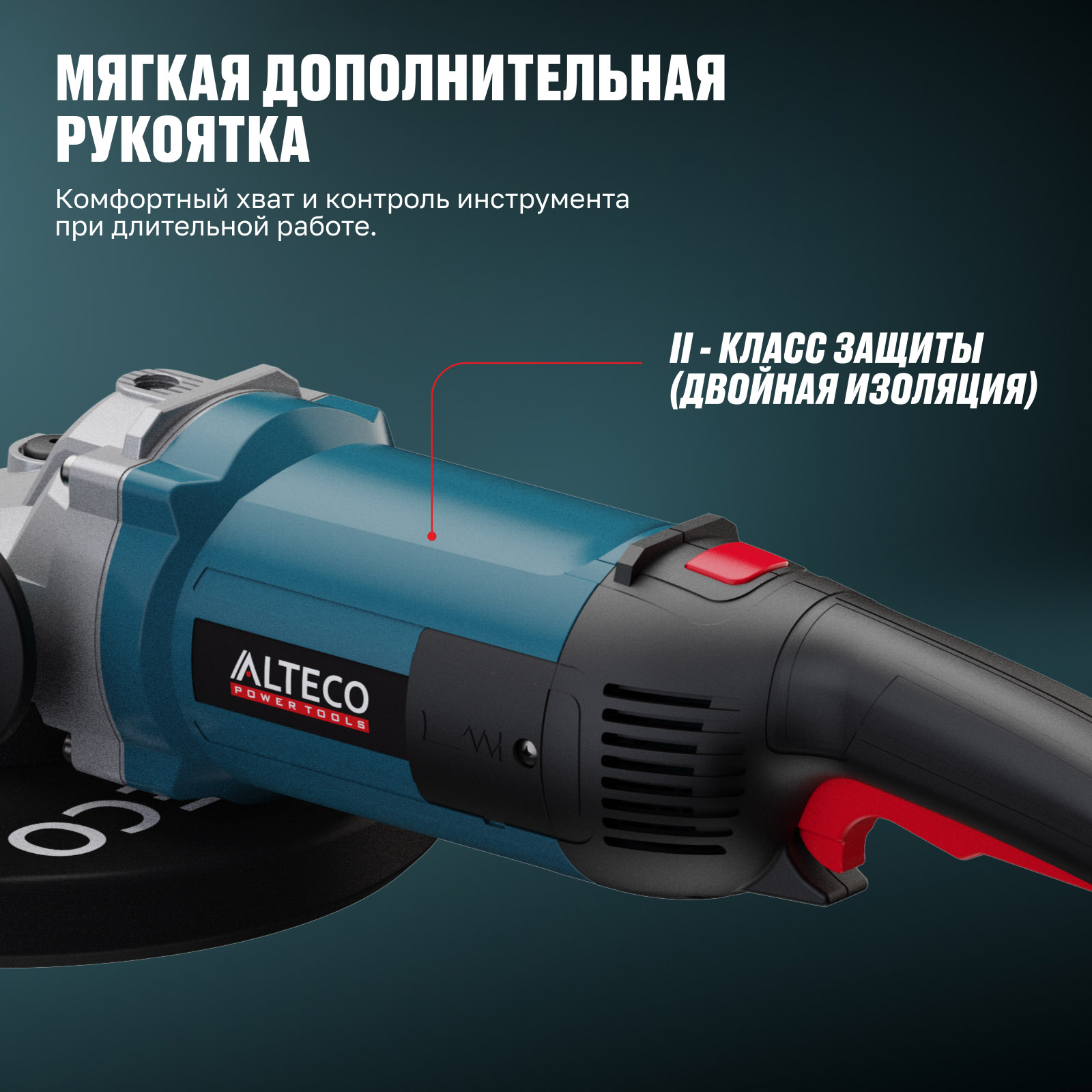 - Мягкая дополнительная рукоятка – комфортный хват и контроль инструмента при длительной работе.