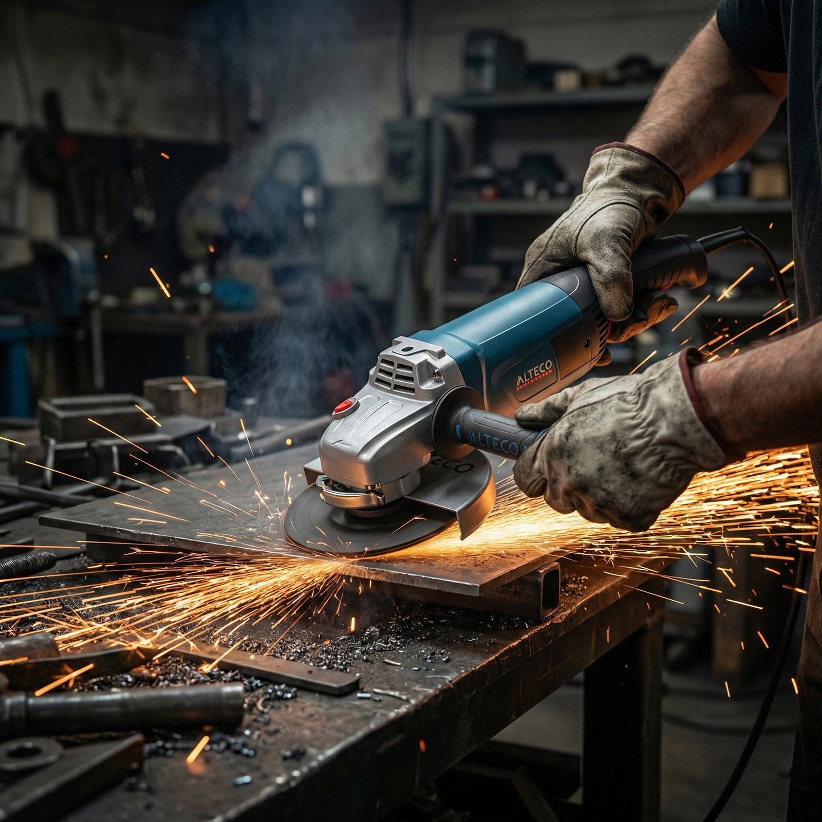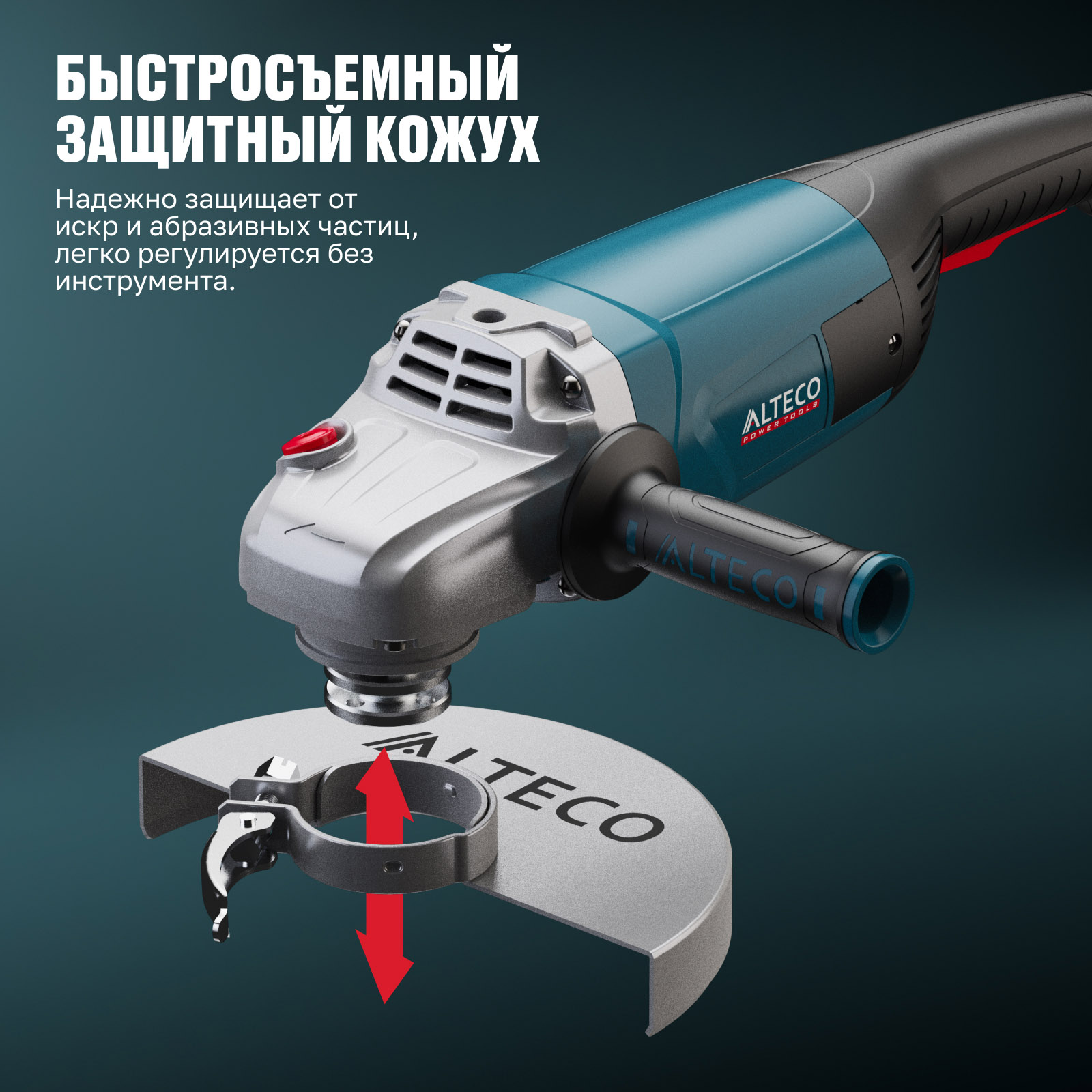 - Быстросъемный защитный кожух — надёжно защищает от искр и абразивных частиц, легко регулируется без инструмента.