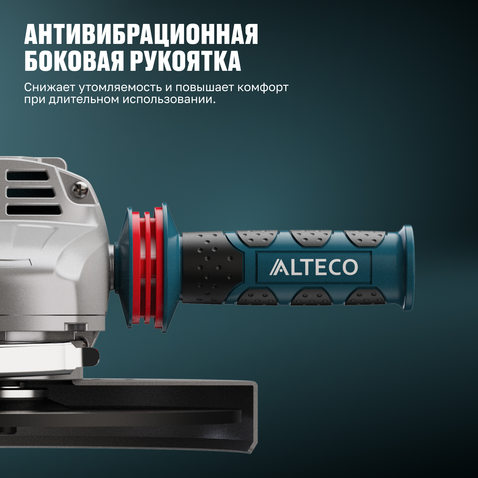 - Антивибрационная боковая рукоятка — снижает утомляемость и повышает комфорт при длительном использовании.