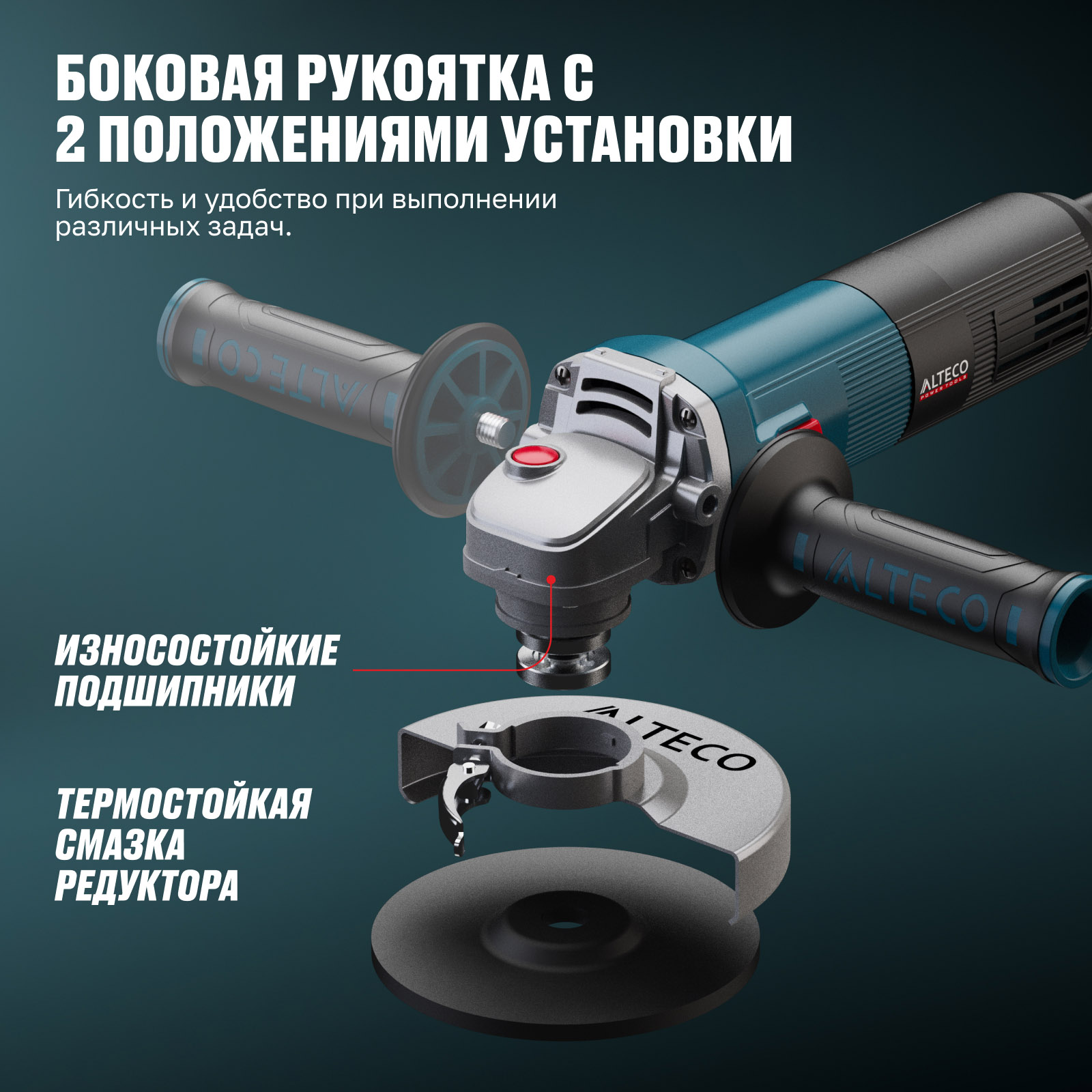 - Дополнительная рукоятка с 2 положениями установки — гибкость и удобство при выполнении различных задач.