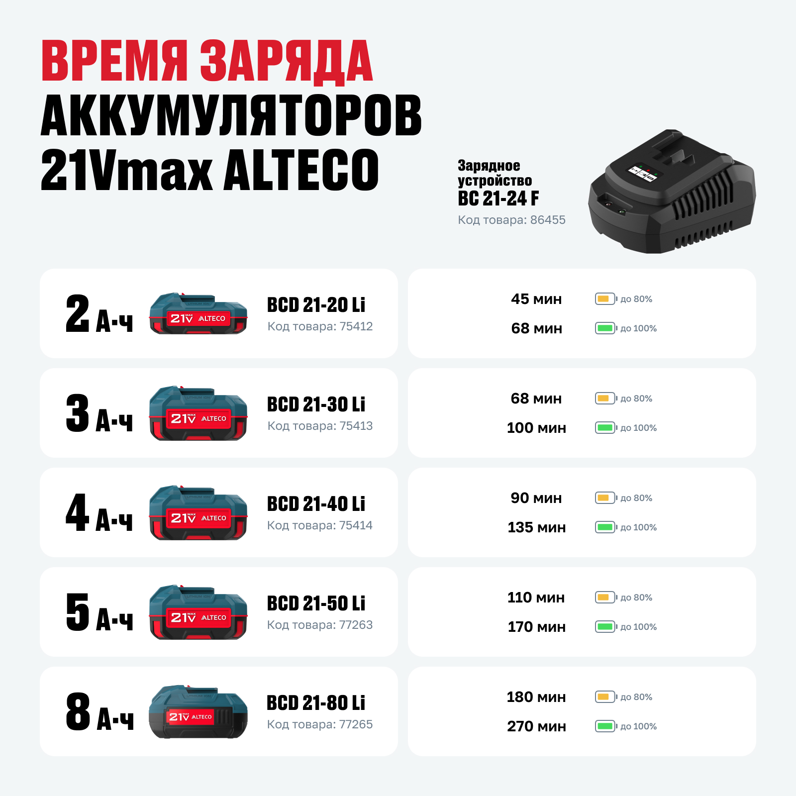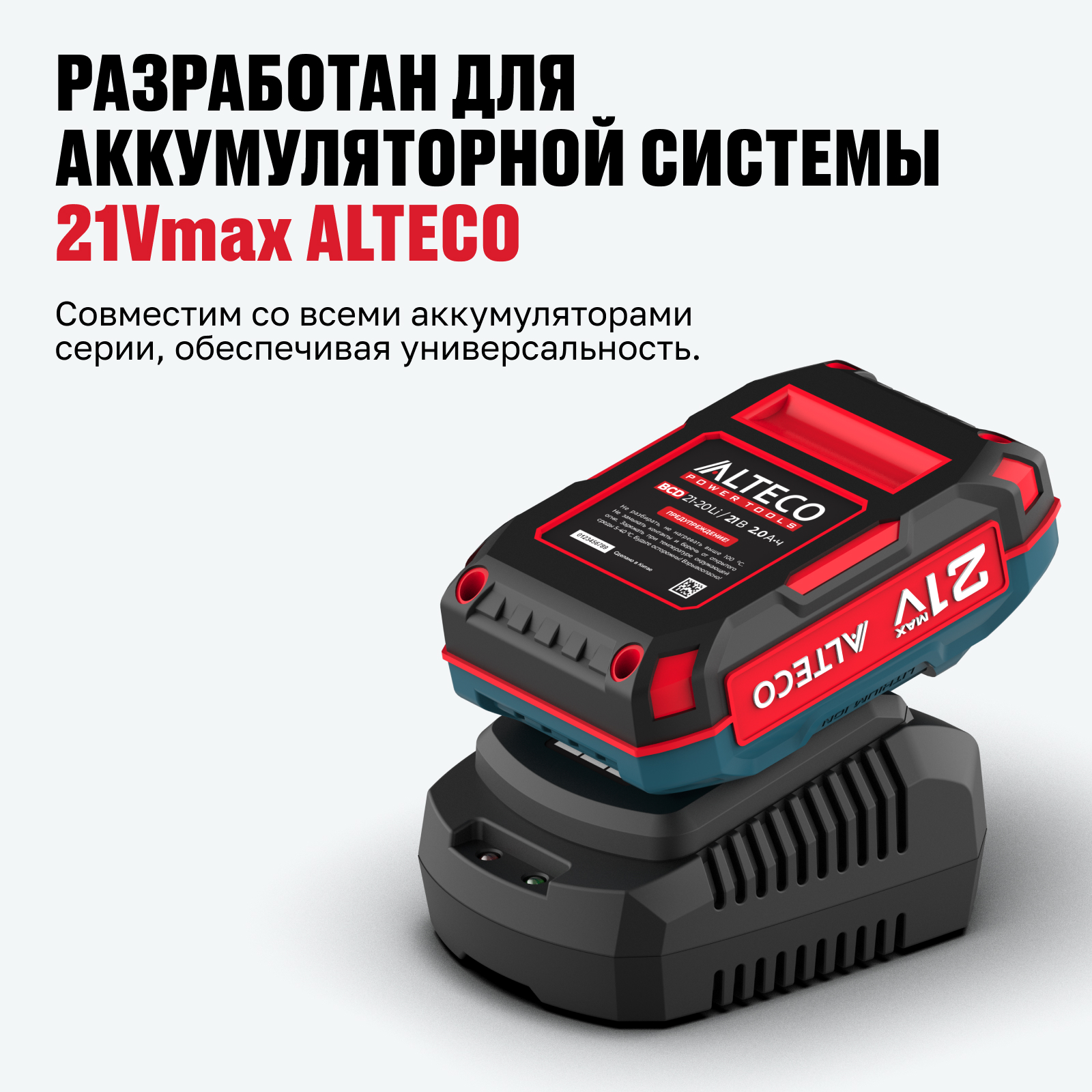 - Разработан для аккумуляторной системы 21Vmax ALTECO — совместим со всеми аккумуляторами серии, обеспечивая универсальность.